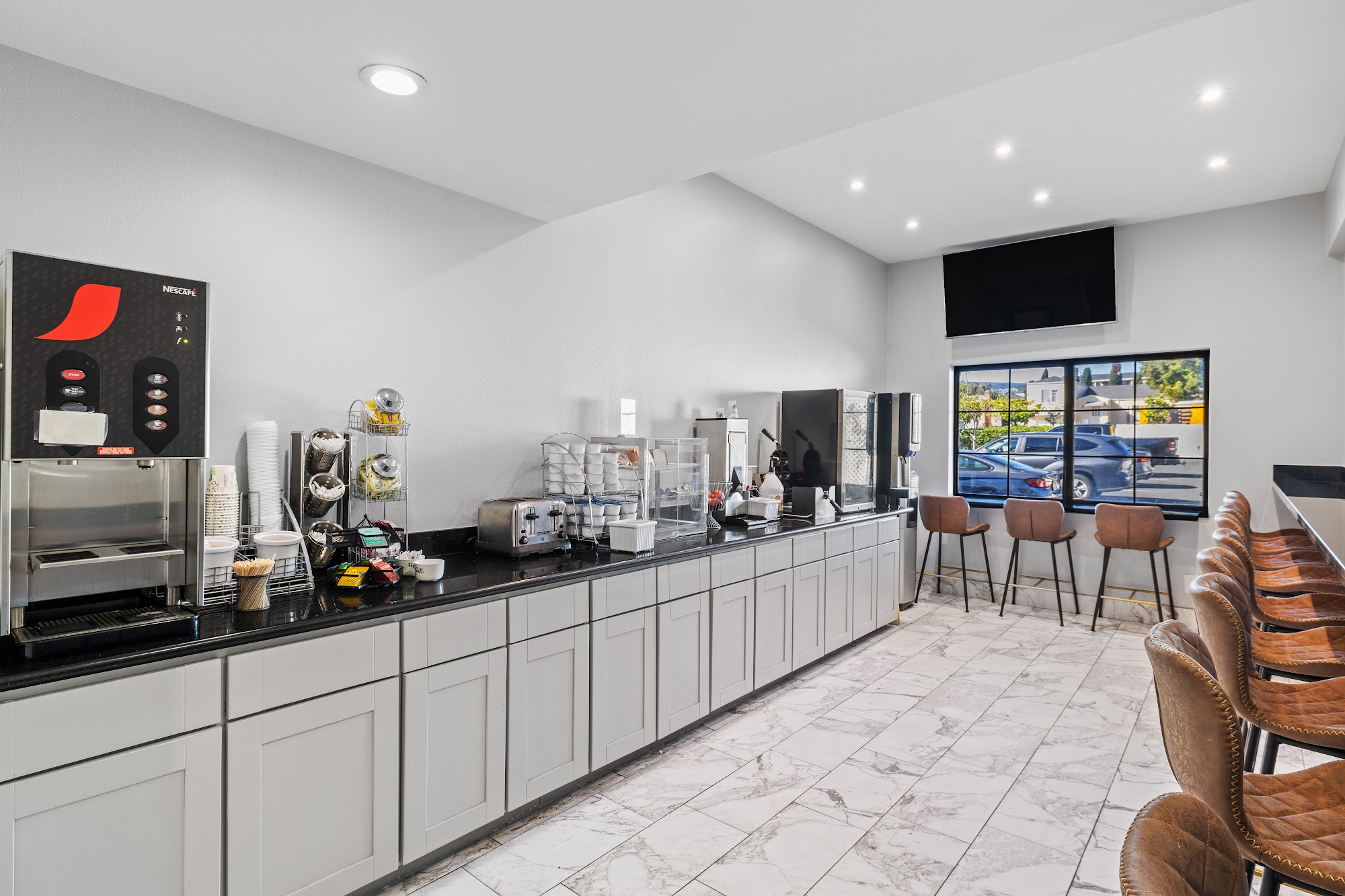 Hotel Skye offers a convenient and comfortable stay for guests, featuring clean and spacious rooms with comfortable queen beds. The hotel is newly renovated, ensuring a fresh atmosphere without lingering carpet odors. Guests appreciate the free parking, internet, and continental breakfast, making it an excellent value for the price. The staff at Hotel Skye is friendly and helpful, with many guests praising their knowledge of the local area. The reception is welcoming, providing excellent service. While some guests noted that the lobby and breakfast area are small, the overall experience remains positive. Though the location is convenient, especially for those with layovers at SFO, some guests mentioned noise from the hallway and thin walls. Recommendations include adding blackout curtains to improve sleep quality. Overall, Hotel Skye is a solid choice for families and travelers looking for a clean, comfortable, and budget-friendly accommodation option.