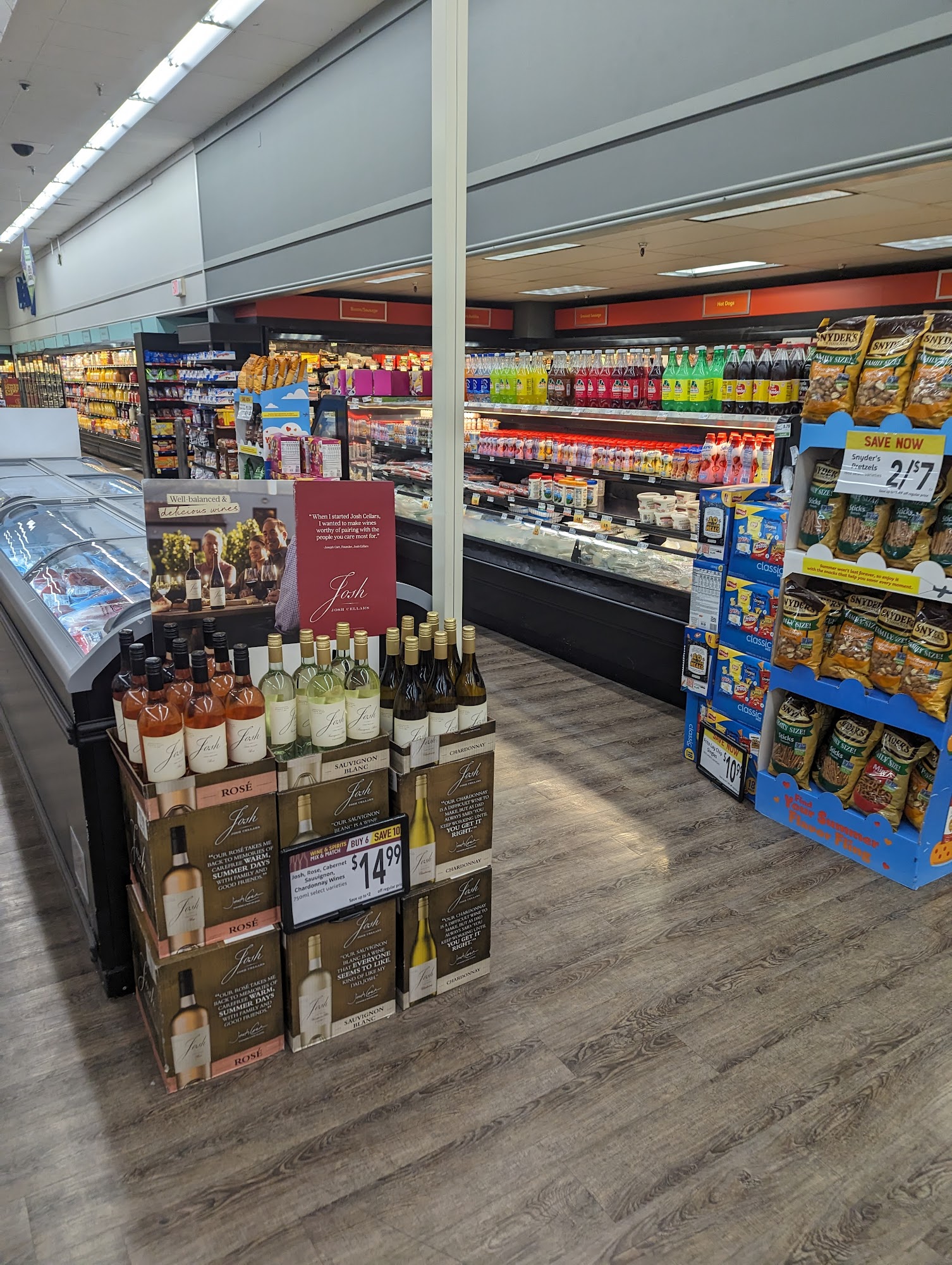 Huge store. Lots of bakery items, and fresh cooked meatloaf, chicken, rib section, a clearance sale towards the back of employees. Only one casher line though it seems, but 3-4 self checkout stations, which seemed to work