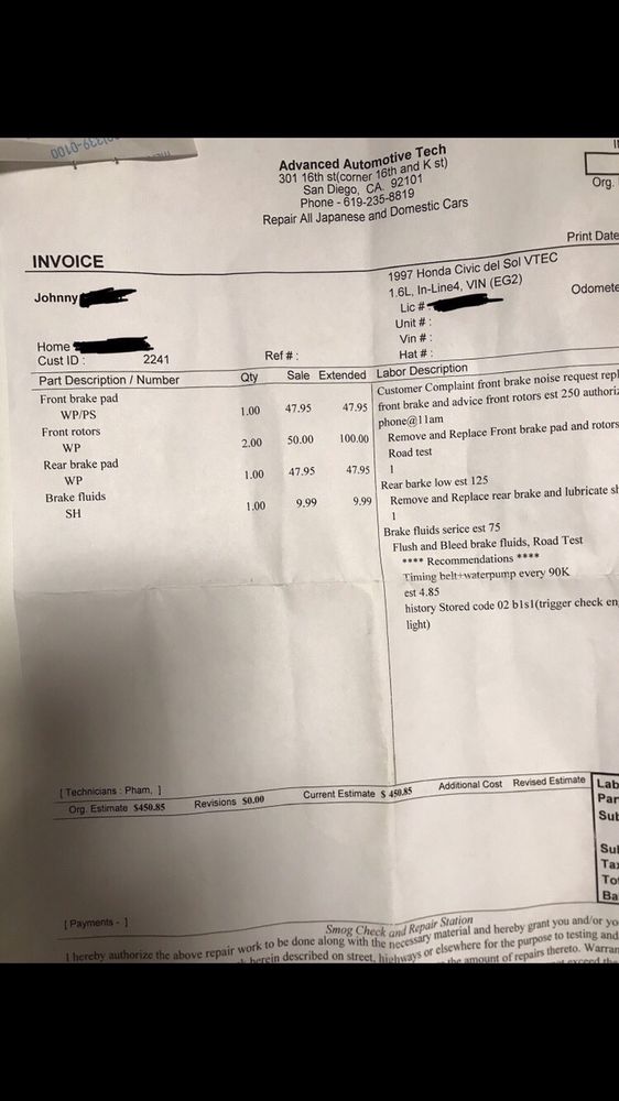 Advanced Auto Tech is an ASE Certified auto repair and smog check station that has been serving the San Diego area for over 20 years. Customers praise the business for its amazing service, honest and skilled mechanics, and fair prices. One reviewer noted that the service was "much better than anywhere else in San Diego by a lot," while another appreciated the staff's kindness and the quick turnaround for their smog inspection. Many customers highlight the business's attention to detail, thorough inspections, and excellent communication throughout the repair process. Overall, Advanced Auto Tech is widely regarded as a trusted and reliable choice for all automotive needs, with customers consistently satisfied with the quality of work and the fair pricing.