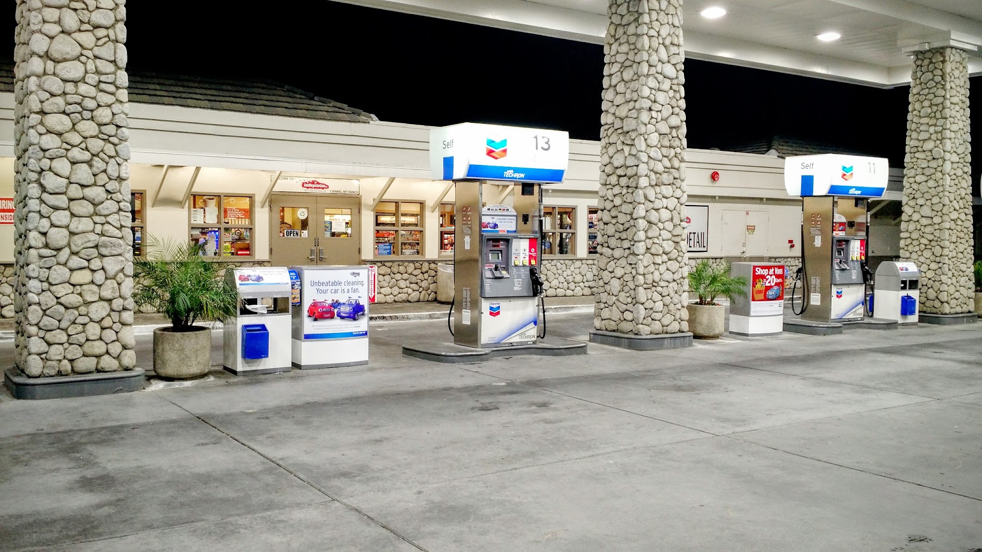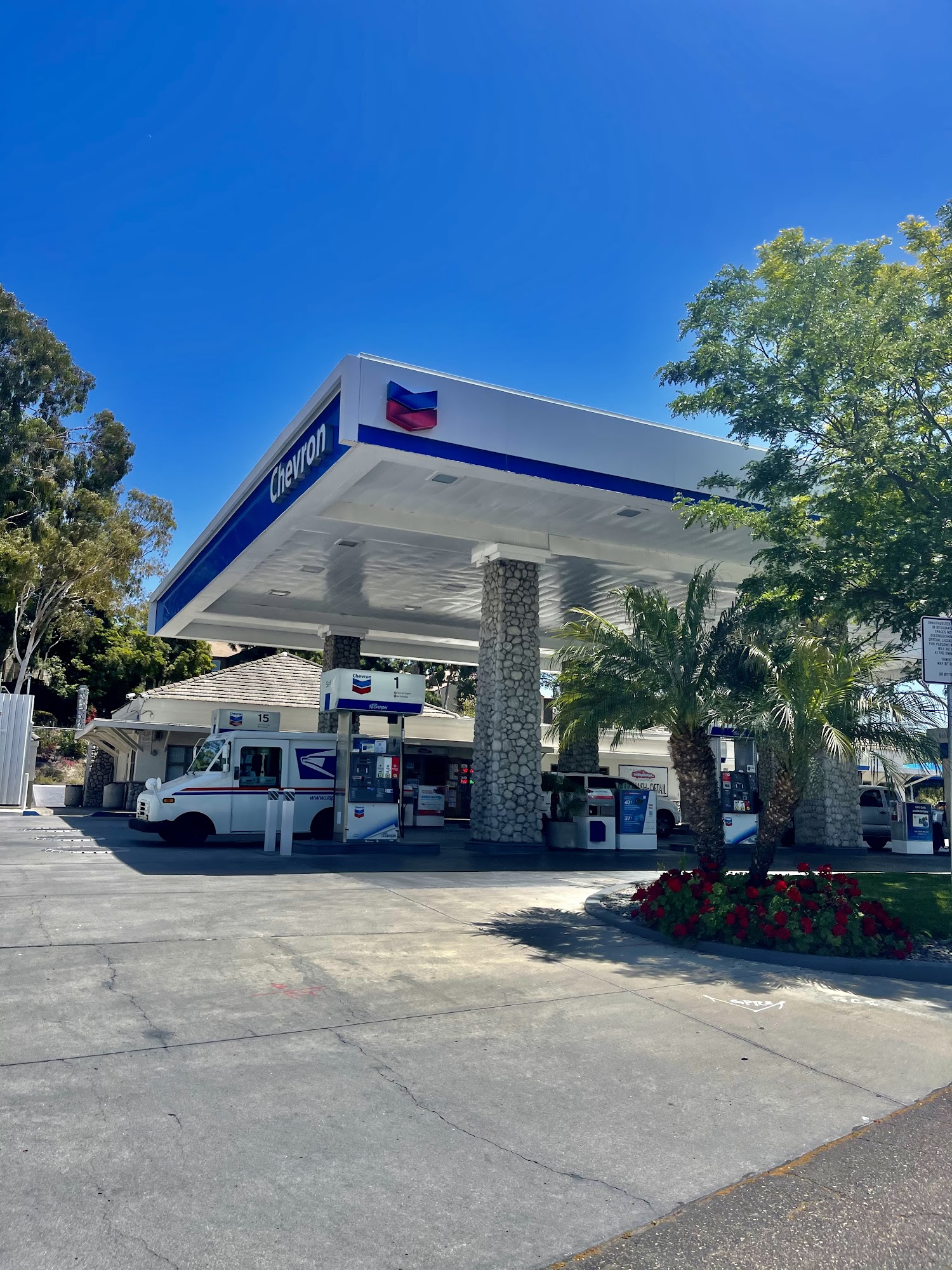 Chevron is a convenient and clean gas station known for its friendly staff and well-stocked environment. Customers appreciate the quick and helpful service, especially when they are in a hurry. The station offers a car wash service, which has been praised for its quality, although some customers experienced temporary issues with the drive-thru shutting down unexpectedly. The staff members are often described as hardworking and attentive, with specific mention of excellent cleaning service when spills or messes occur. The location is well-lit and feels safe at night, making it a reliable spot for fueling up. While some pump card readers occasionally malfunction, customers generally find the station easy to access and recommend it for its cleanliness, convenience, and friendly atmosphere. Additional amenities include an Amazon locker and a San Diego Car Care detail and car wash, both operating during specified hours. Overall, Chevron offers a dependable experience for those seeking quick, clean, and friendly service.