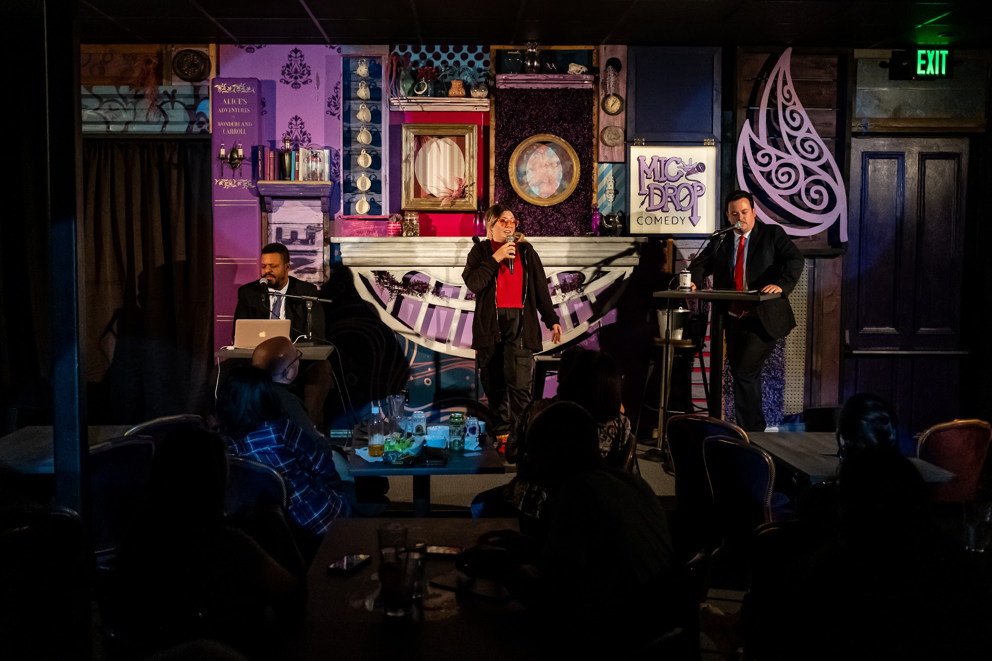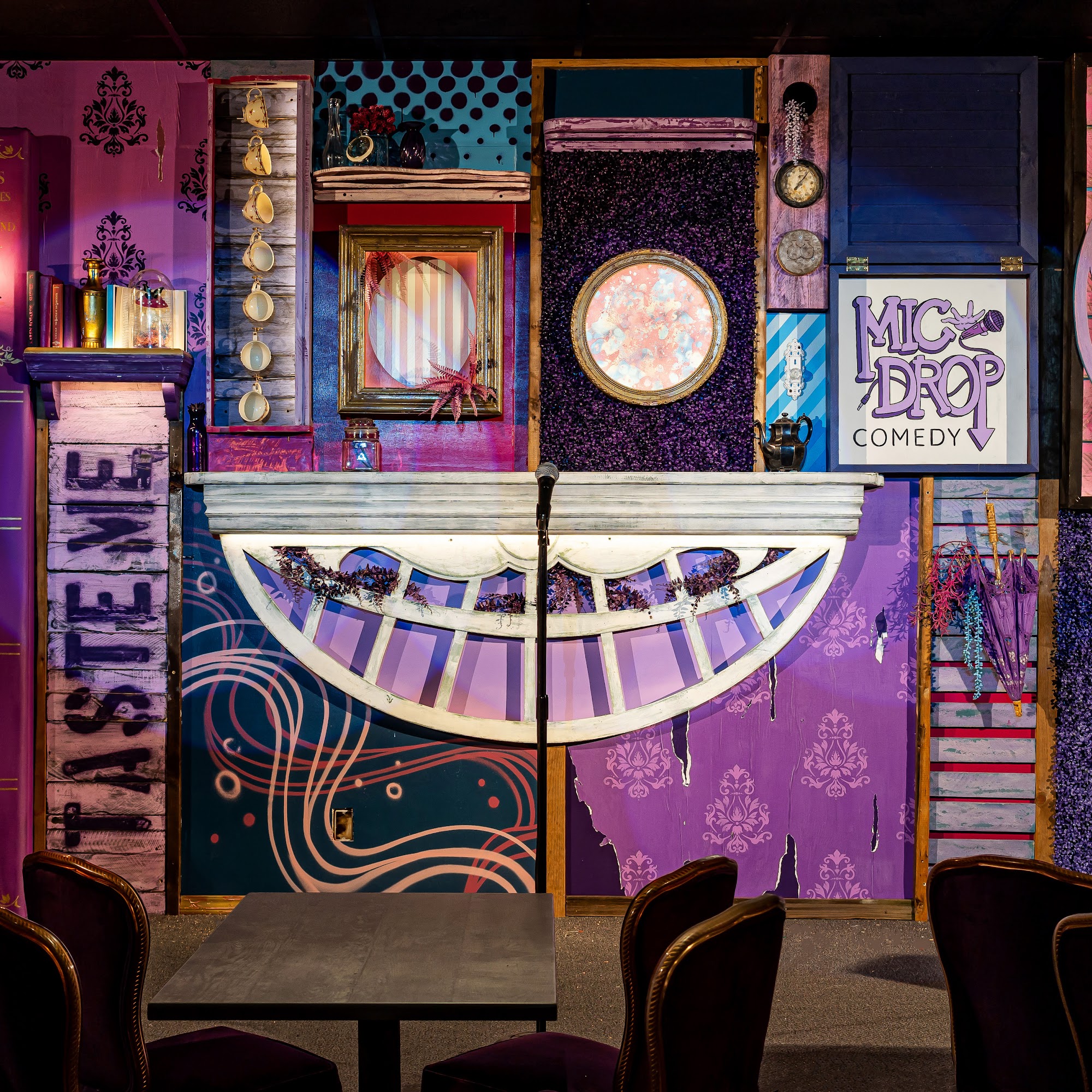 Mic Drop Comedy is a unique comedy club located in San Diego, known for its Alice in Wonderland theme and vibrant atmosphere. Guests enjoy excellent craft cocktails and a chef-driven menu without the pressure of a drink or food minimum. Reviewers praise the club for its great ambiance, friendly waitstaff, and top-notch performances, including one by Tyler Gaca. Many attendees have expressed their love for the venue, noting it as their favorite comedy club and a place to enjoy laughter regularly. The club also hosts special events, such as Kids' comedy showcases, making it a fun experience for all ages. With ample free parking and a welcoming vibe, Mic Drop Comedy promises an unforgettable night of laughs.