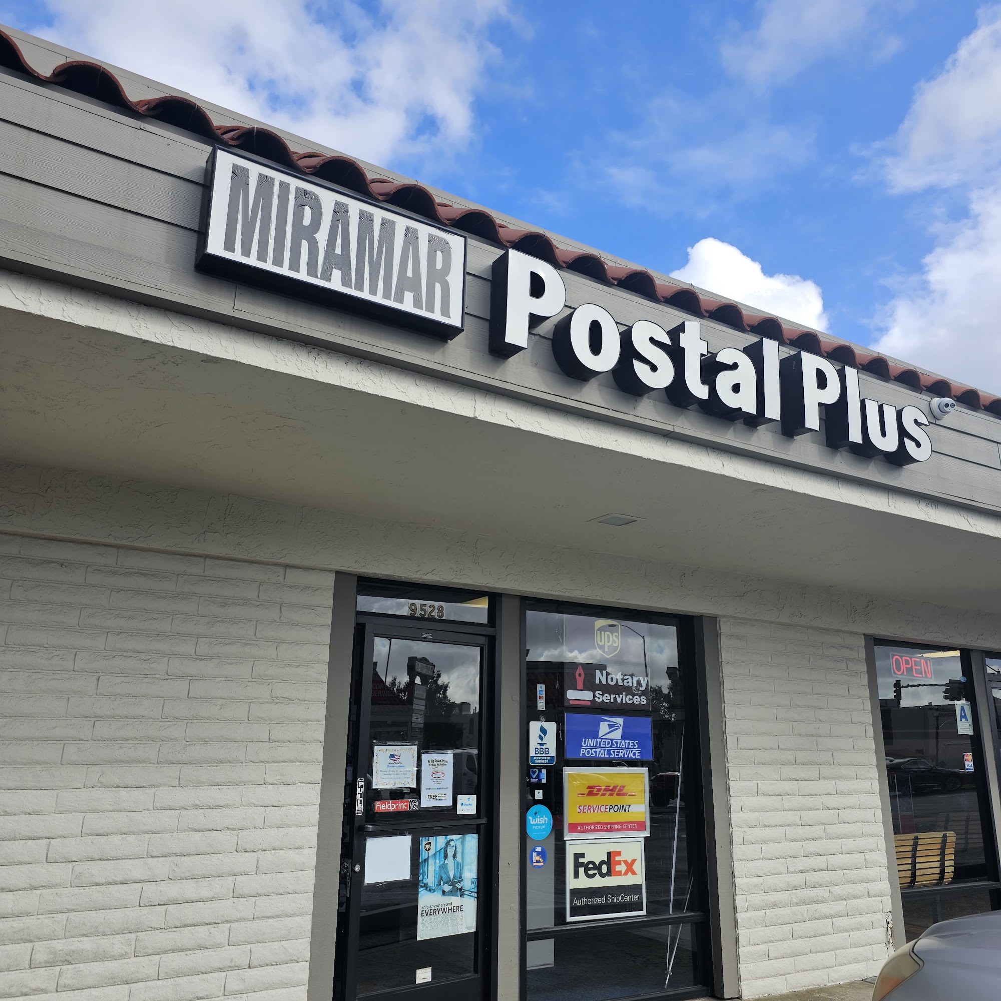 Miramar Postal Plus is a local retail shipping store in business for 35 years. It offers all post office services and more, including mailbox rentals with 24-hour access, virtual mail, and shipping with USPS, UPS, FedEx, and DHL. Customers do not have to drive around town to ship packages, as they can do it all at this one location. The store also sells stamps, stationery, envelopes, pens, small gifts, and electronics, while providing copying, printing, and notary services. It is also a Fieldprint station for fingerprinting and I9 verification. Reviews consistently highlight great, fast, and efficient service. Customers report being helped with packing multiple packages and returns without even having to ask. The notary service is described as the fastest and most efficient. Staff are noted as extraordinarily nice and helpful, with one reviewer praising the positive service as unexpectedly impressive. Long-time customers offer nothing but praise for the consistent, helpful service even from abroad.