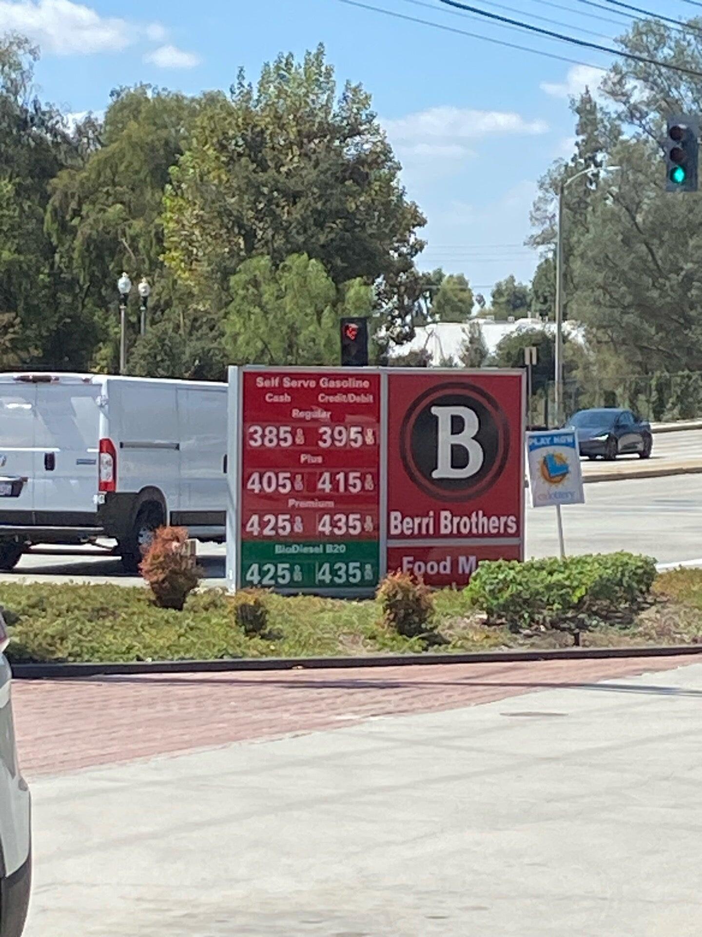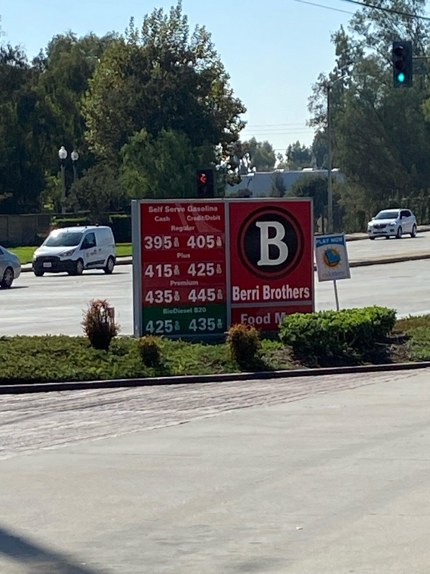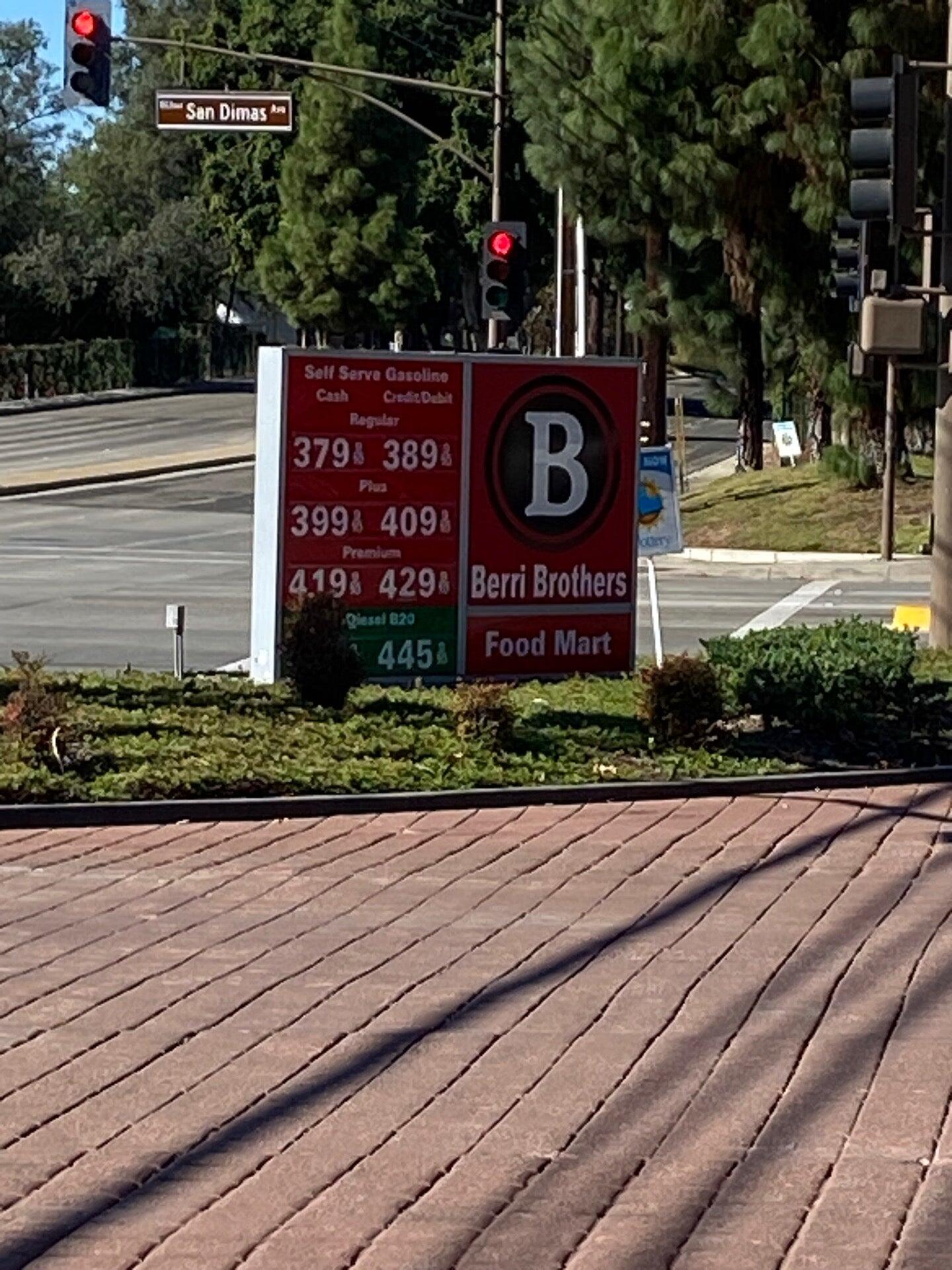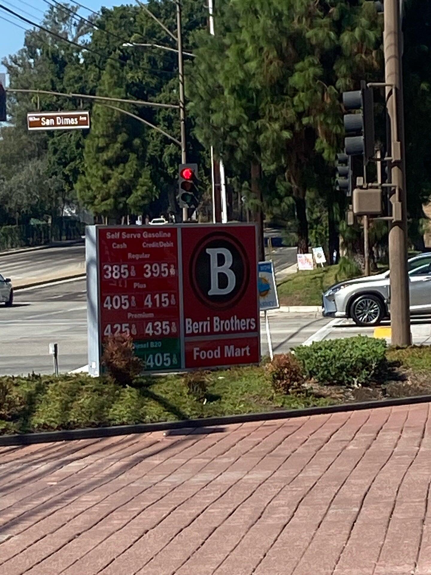 Berri Brothers is known for offering some of the lowest gas prices in the San Dimas area, often being the cheapest around. The station is located in a busy area, which means it can get crowded during peak hours. While the prices are competitive, some customers have noticed that the gas prices tend to fluctuate quite a bit. The convenience store adds to the appeal, making it a good place to fill up. Staff in the evenings could improve their customer service, but overall, the station provides affordable fuel options. Many customers recommend checking Berri Brothers for low prices, especially compared to other local stations like Costco and Sam's Club.