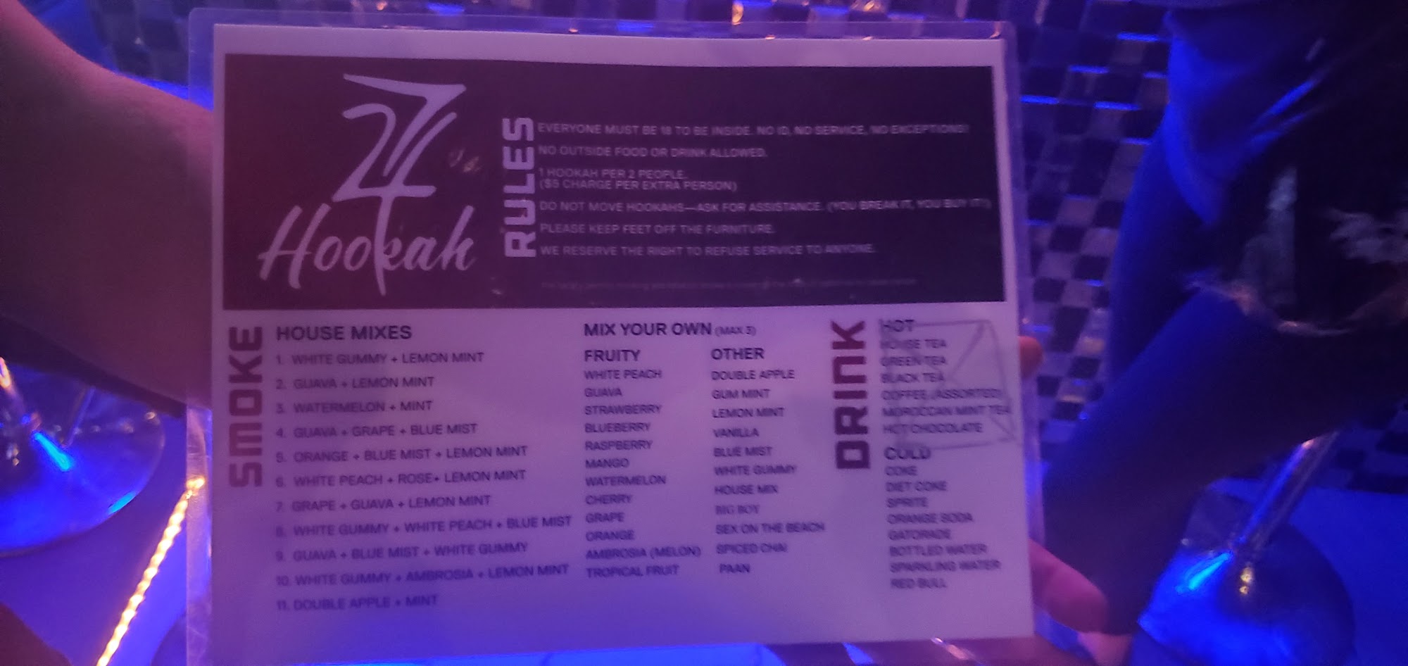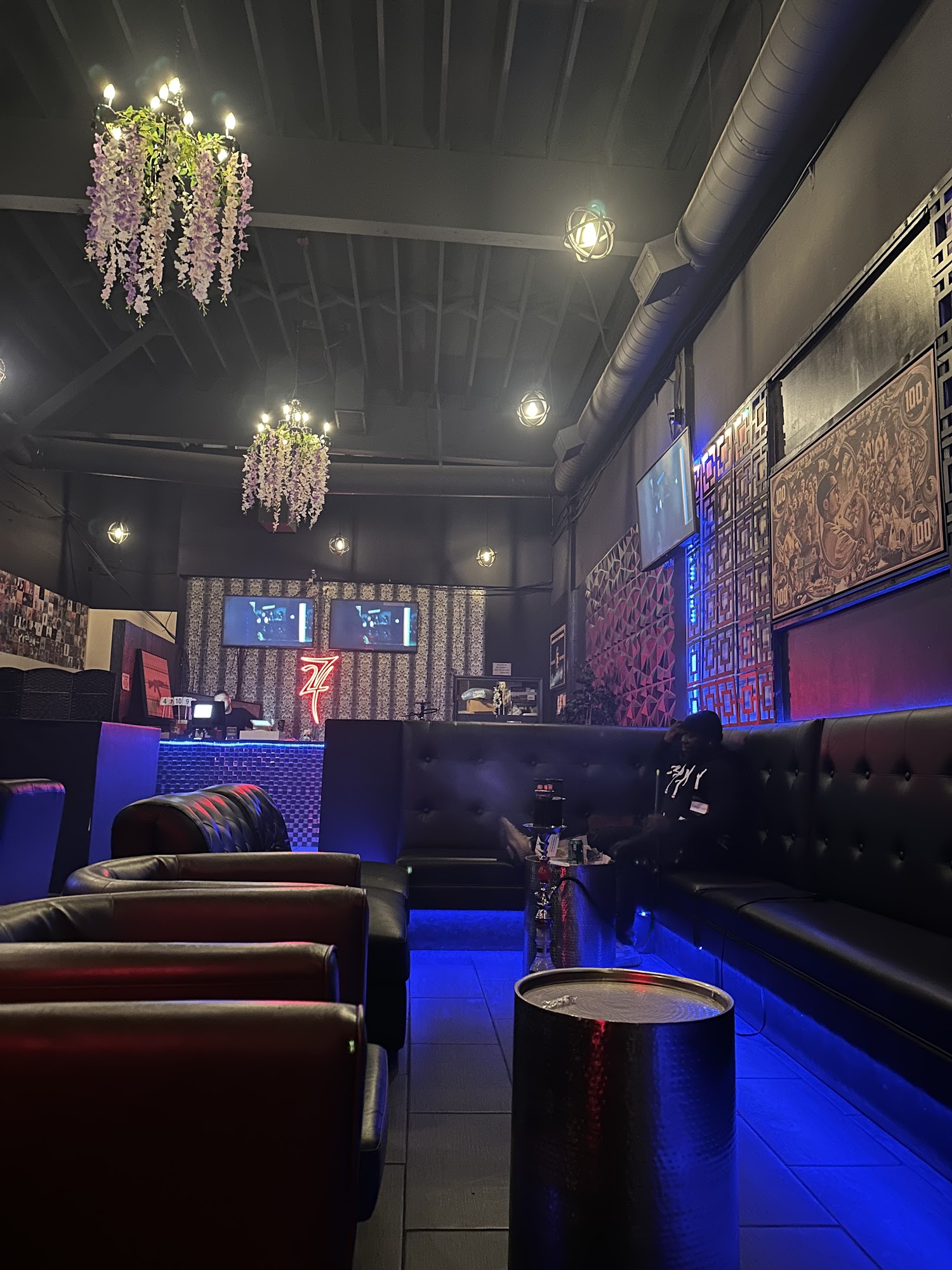 724 Hookah is considered the best hookah lounge in town, known for its authentic flavors and great experience. The lounge offers a relaxed, yet lively atmosphere, especially on weekends when it gets busy and hyped. During the week, it maintains chill vibes with a nice ambiance, comfortable lighting, and hip hop music that creates a fun environment. The staff, particularly Noah, is friendly and attentive, always willing to change the hookah flavor if needed and ensuring good customer care. The place welcomes all dress styles, from sweats to business casual, making it inclusive and accessible. Unique features like laser lights enhance the hookah experience, giving it a bar or club feel without alcohol. The lounge is appreciated for its outstanding service, personalized touches like birthday shout outs, and a sense of community, with locals frequently stopping by. Overall, 724 Hookah is a favorite spot for many, offering quality hookah, good vibes, and a friendly environment perfect for hanging out with friends.
