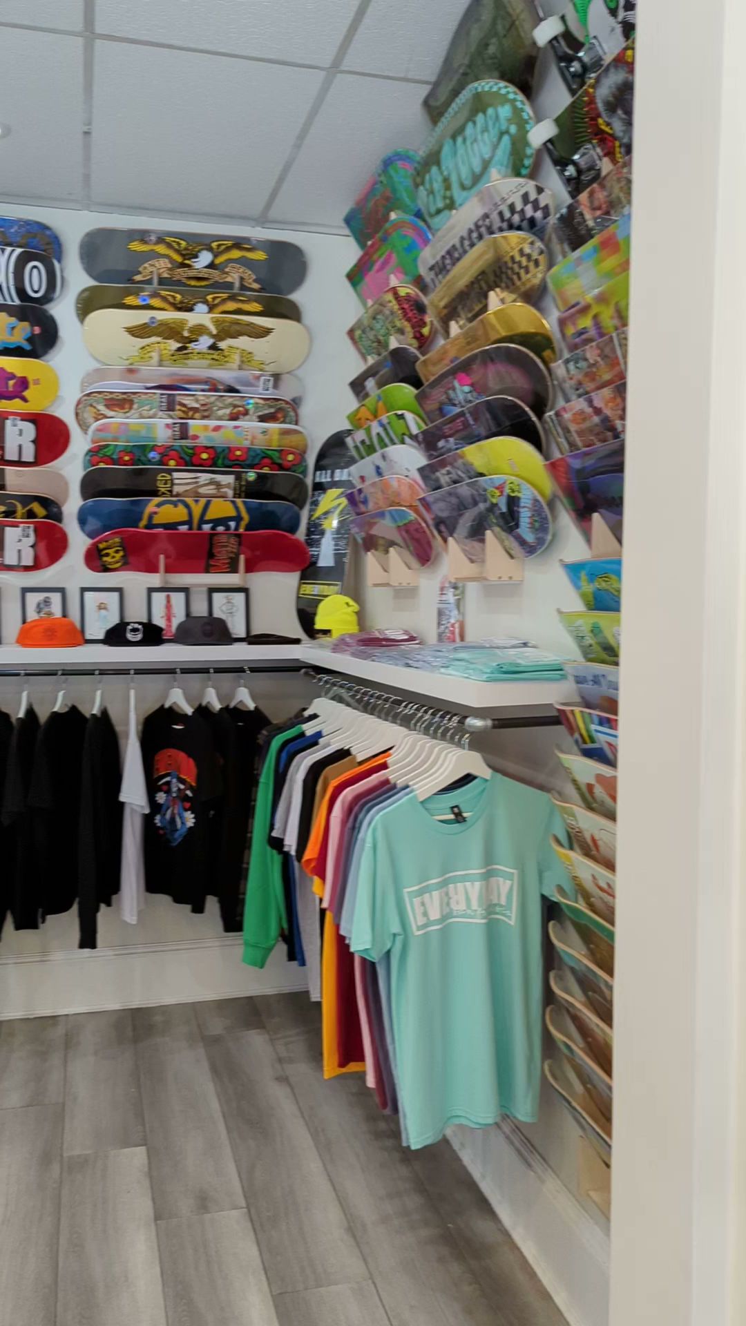 Everyday Skate Shop is a small, welcoming store located in the heart of the city, known for its chill vibe and strong support of the local skate community. The shop offers a great selection of decks, wheels, and gear, with a focus on quality and variety, including different wheel durometers and sizes. Customers appreciate the friendly and knowledgeable staff, who provide personalized service and helpful advice, making beginners feel comfortable and welcomed. The shop also contributes to the local culture by supporting local artists and being accessible to everyone. Visitors often find it to be a convenient stop while traveling through the city, with staff willing to assist with quick repairs, like tightening bolts. Overall, Everyday Skate Shop is highly recommended for its excellent customer experience, diverse product range, and dedication to the skateboarding community.