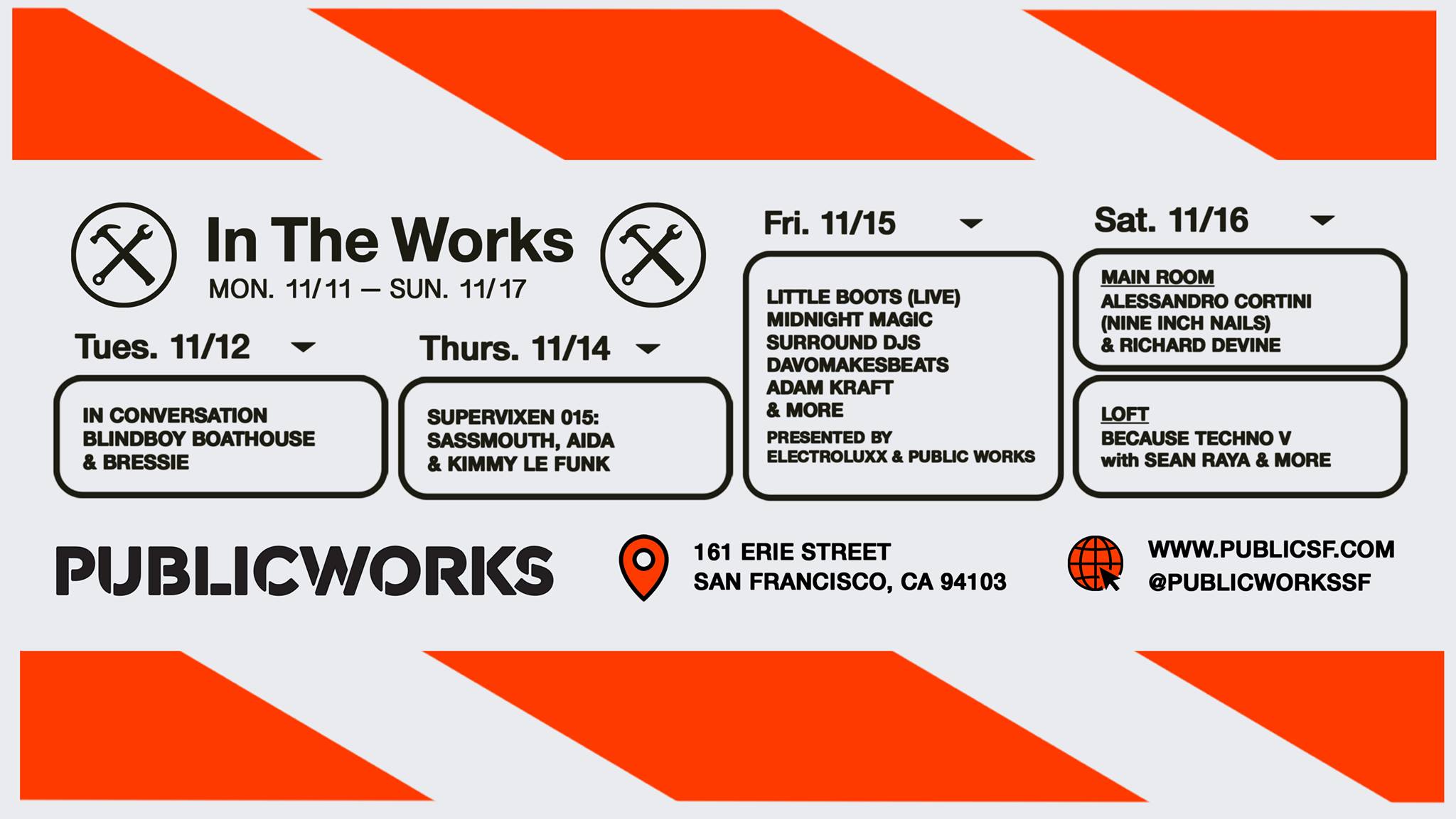 Public Works is a lively nightclub and event space located in San Francisco’s Mission district, known for its focus on community and diverse music. The venue features a Funktion-One sound system and a large, flexible space that hosts international DJs, underground artists, and local talent, creating an energetic atmosphere for dance and music lovers. Guests appreciate the friendly and efficient staff, as well as the variety of bars that make it easy to enjoy the night. The venue often hosts high-quality events, including popular house music sets and special weekends like Parameter weekender. While the space is large enough for movement, some find navigating the layout tricky during packed events, with limited visibility from certain areas. Parking can be challenging in the neighborhood, so many visitors prefer to Uber or walk. Food outside the venue is available from vendors offering hotdogs and tacos, along with nearby neighborhood options. Overall, Public Works is regarded as one of the best nightclubs in San Francisco, consistently hosting memorable events that leave lasting impressions on attendees.