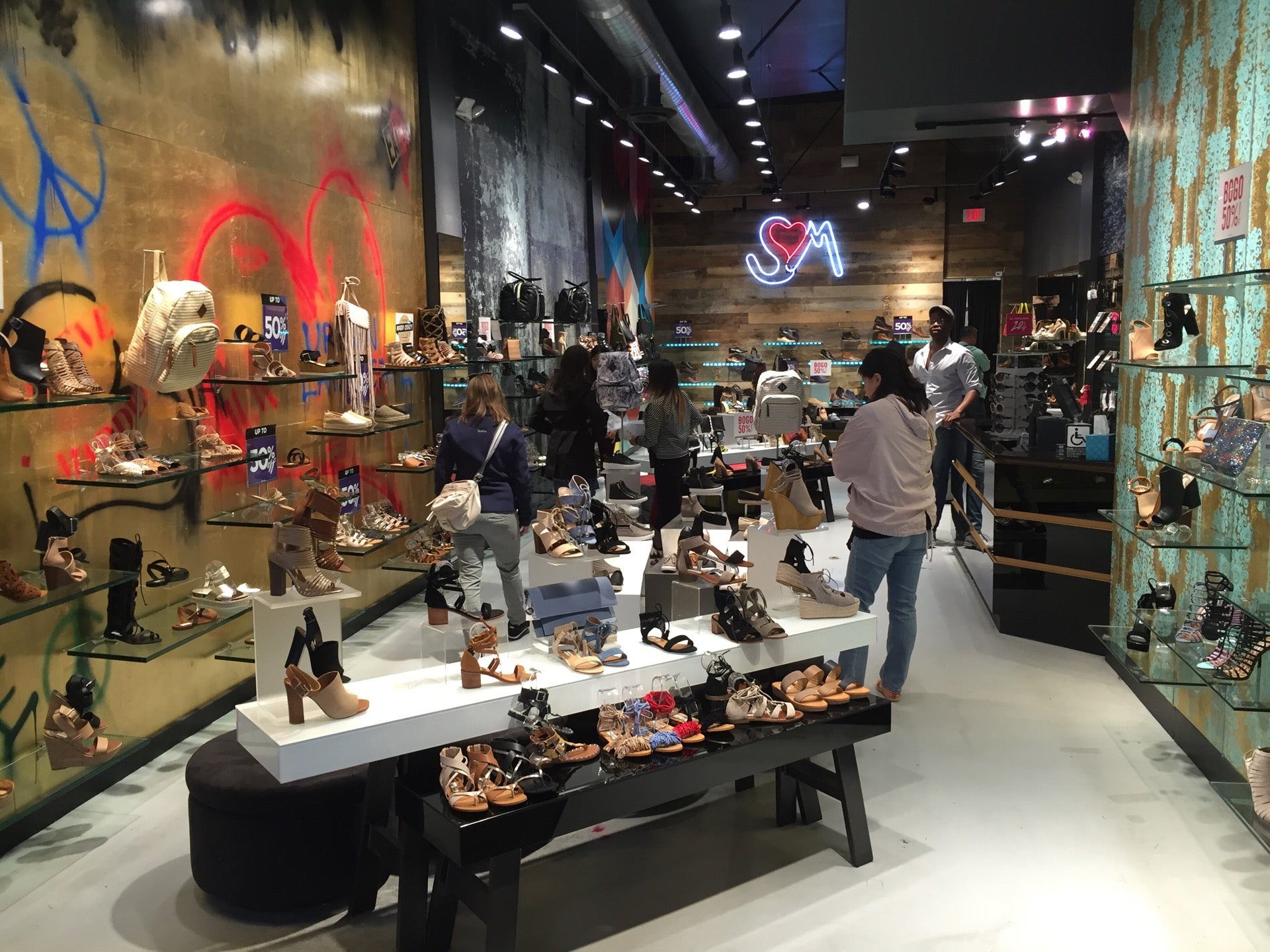 Situated in the heart of San Francisco, this Steve Madden store offers a unique blend of trendy boots, comfortable sneakers, sandals, dress shoes, heels, handbags, and men's dress shoe options. The set up and selection of products is elite. The sales associates are extremely helpful, fast, efficient, sweet, and outgoing. They provide superior customer service, going above and beyond. Staff are incredibly knowledgeable, offering guidance on fit and promotions, and they accommodate customers completely with returns and exchanges. They cater to customers to help find all the products desired, ensuring everyone feels safe and comfortable. The team works together seamlessly, from experienced associates to those in training, all dedicated to an amazing shopping experience. Thanks to the staff, customers leave happy and eager to return and shop some more.