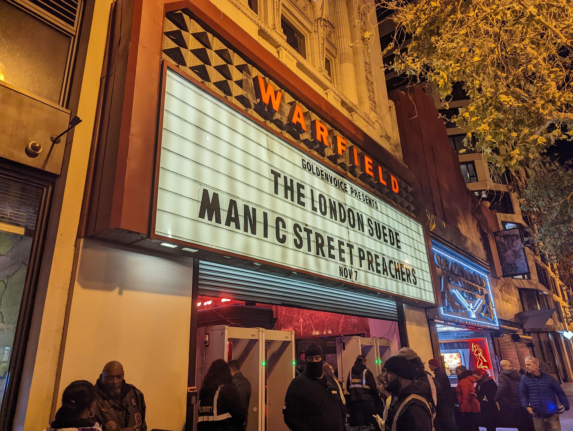The Warfield is great. Lots of great bands play there. And, perhaps, more importantly, the security is nice, they allow refillable waster bottles (I'm looking at you, Chase Center & Masonic- you're both gross), and street parking is fairly easy.