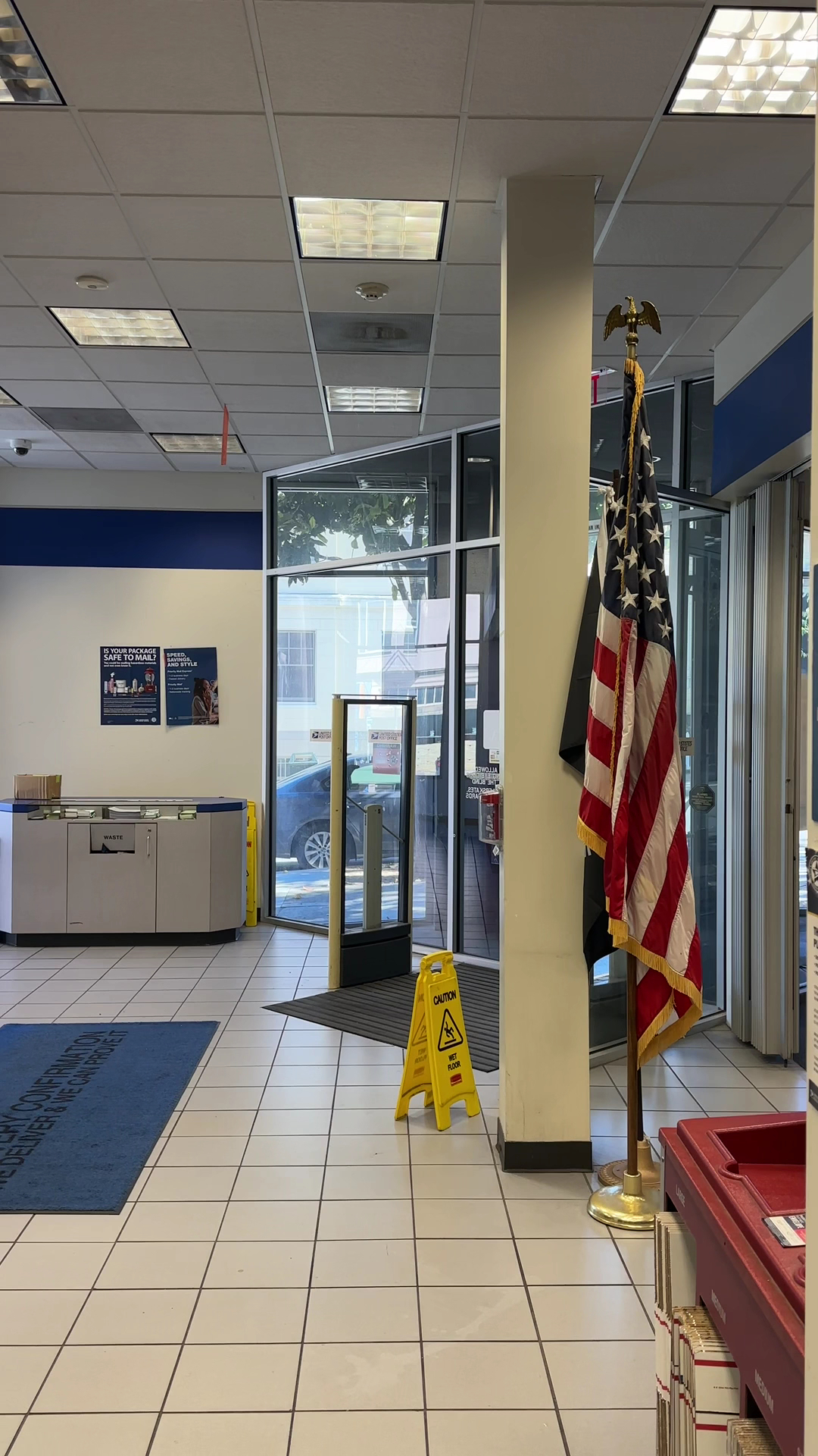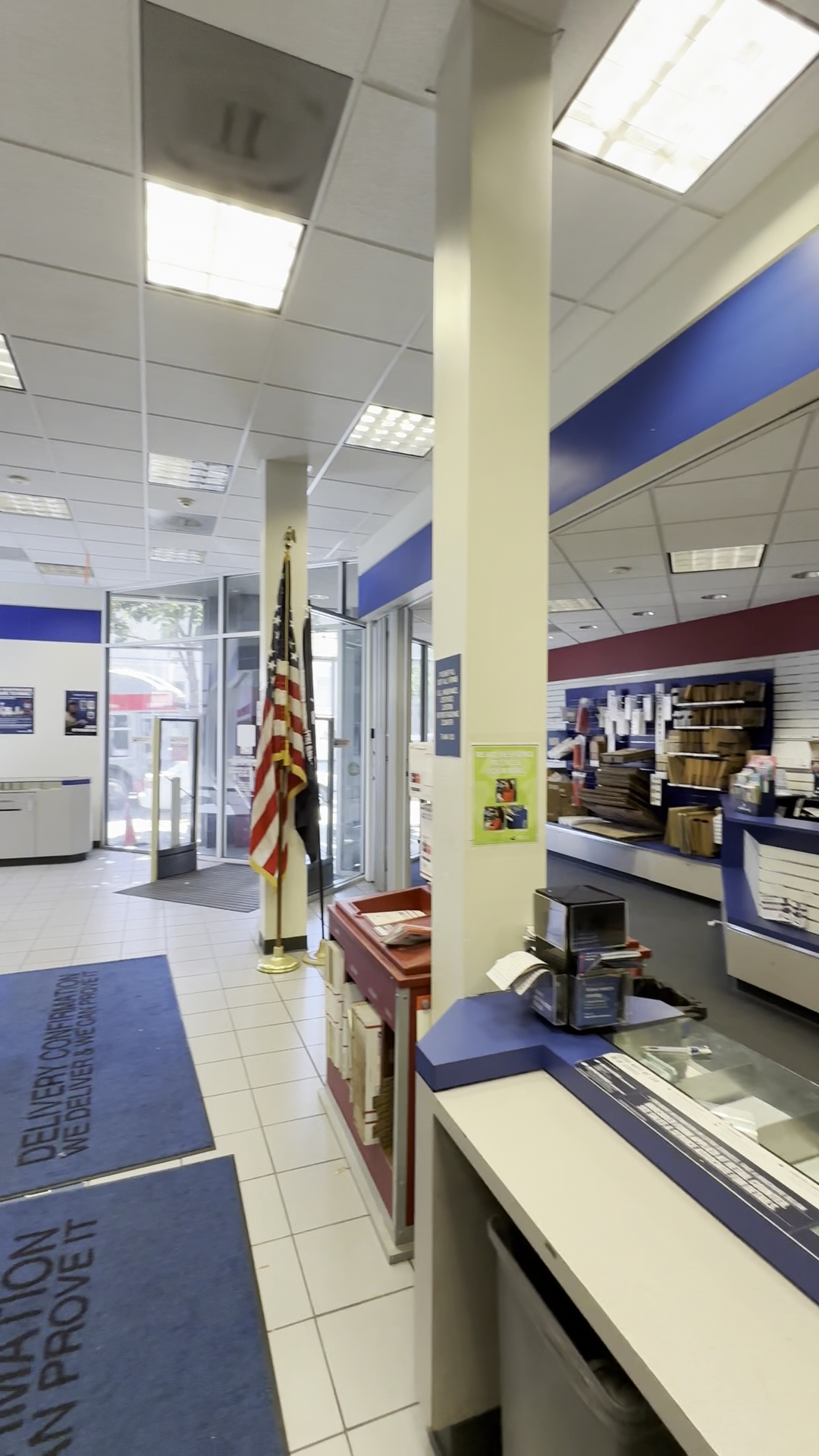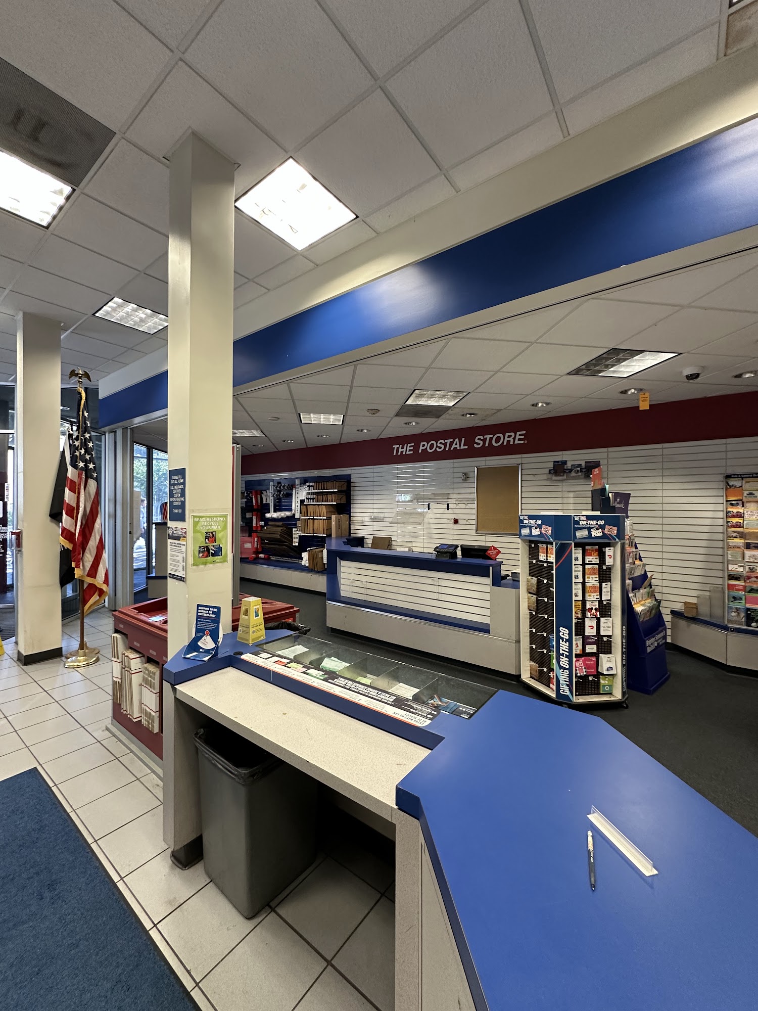 Staff areā¦., lines are manageable most days, everything you could want in a post office is there. Plenty of mailboxes outside.