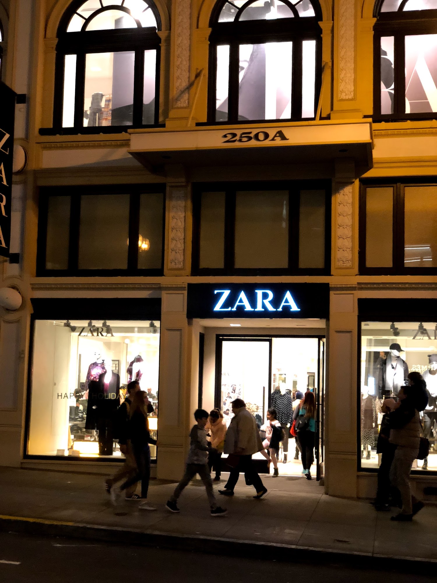 📍 250 Post St, San Francisco, CA 94108. ZARA has a limited curbside loading zone available outside. This photo captured in 2024 shows the stores signage and curb length. I recommend this location for passenger pick-up or drop-off. ★★★★★