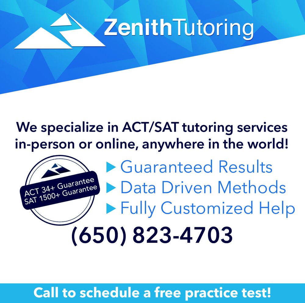 Zenith's mission is to make students better learners—not just better test takers. Our key benefits: ● The best SAT/ACT test score improvements and guarantees in the industry—by a significant margin. ● Ambitious programs. One even provides a money-back guarantee of a perfect 36 on the ACT. ● SSAT/ISEE test preparation and all academic subjects as well. ● 3 options for instruction: private tutoring, semi-private tutoring, and self-paced. ● Private instructor attention within our semi-private class model. ● An intelligent curriculum that adapts lessons based on student progress. ● Sessions can be attended either in-person or online. Location truly doesn’t matter. ● All classes have flexible scheduling. It is possible to begin at any time!