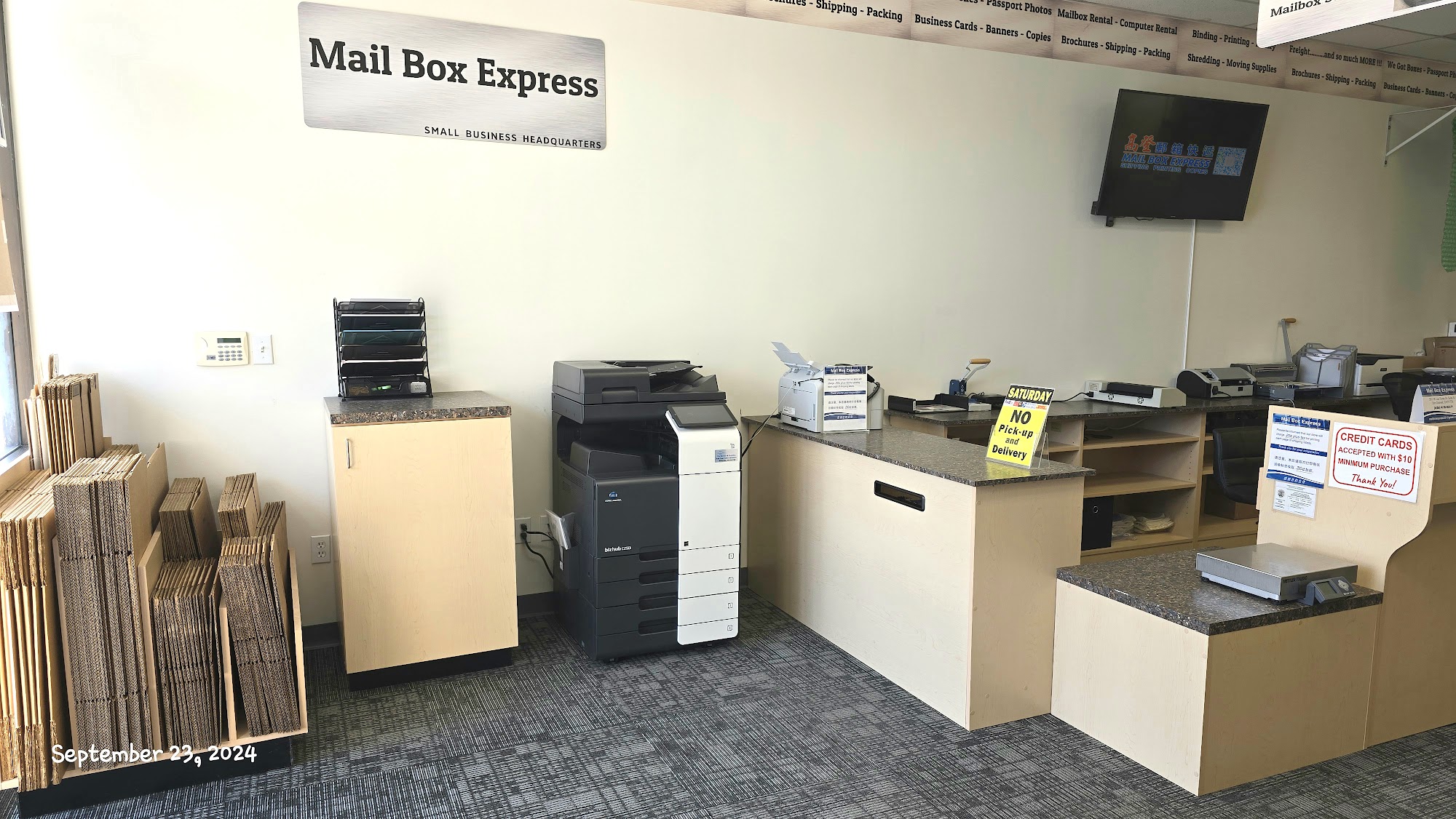 The mail box express man that help me is very patient and nice, good service, will come back for sending mail, shipping and mail box very good deal