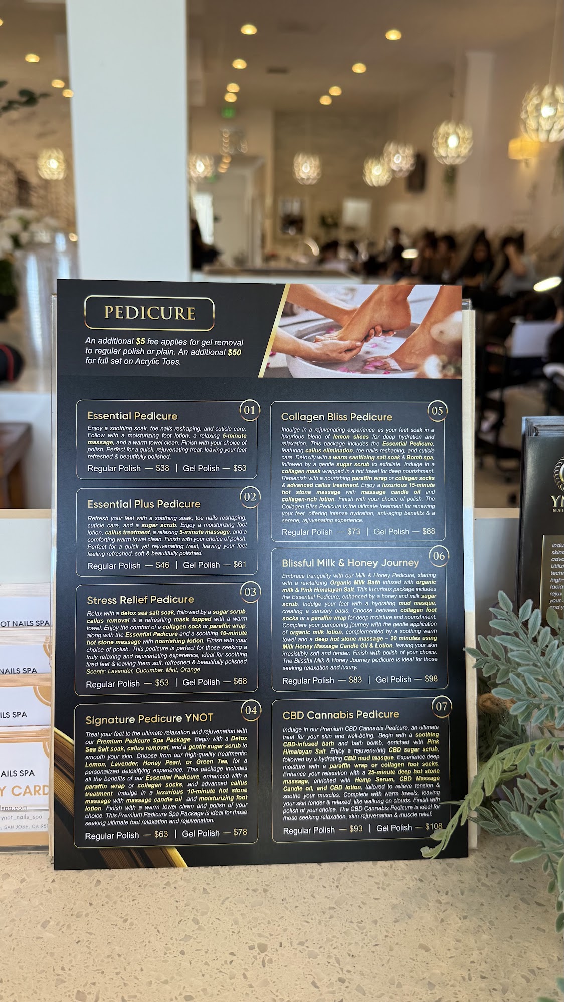 Ynot Nails Spa is one of the best and most spacious nail salons in Bay Area. By using organic nail products and being certified as Healthy Nail Salon by Department of Environmental Health - Santa Clara County, Ynot Nails Spa is well trusted by many customers over 12 years. With more than 20 nail technicians who have over 10 years experiences in nails industry and updating their skill daily, your nails will be in good hands. Finally, we do acrylic, gel polish, nail art designs, pink and white, refill, take off, basic manicure and pedicures for men, women and kids, facial skincare and waxing. Let come and try our nail care services for beautiful nails and fabulous toes!