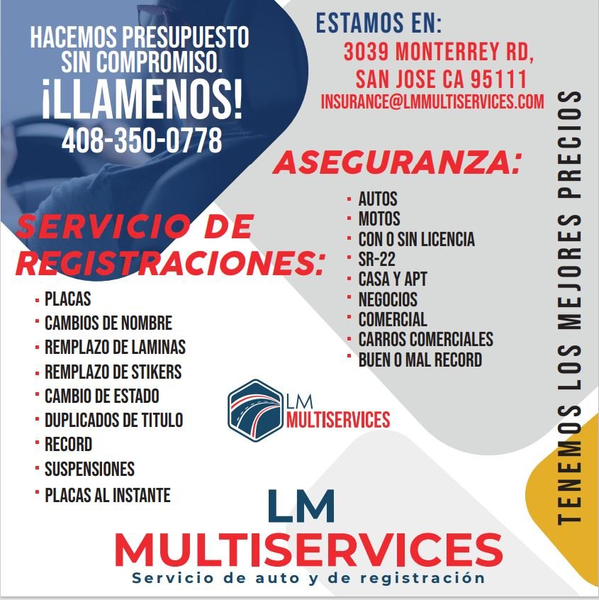 When it comes to protecting your assets, put them in the hands of someone you can trust. LM Multiservices is an insurance agency in San Jose, CA with four years of industry experience fully committed to providing high-quality services and matching you with the insurance coverage you need for premiums that won't break your budget. No matter what your needs may be, there's an insurance plan for you and we would be more than happy to help you select the right one.