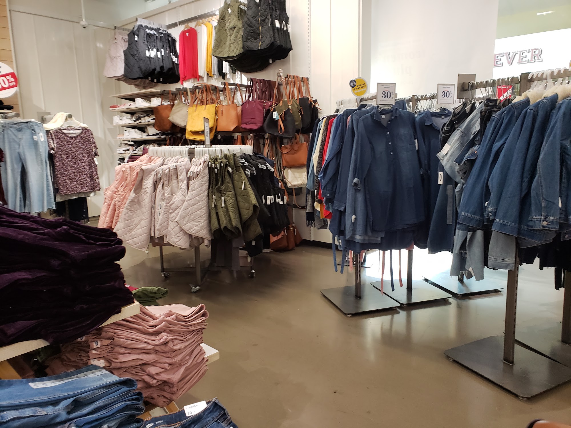 Old Navy is an apparel and accessories brand for the entire family. The store offers great sales, a good selection of casual clothing, and a variety of styles, including jeans, summer shirts, and shorts. The service is great and personable. Old Navy sells extra tall sizes in their pants and dresses, and has a range of accessories and cosmetics at good prices. The workers are friendly and polite. However, the sales racks can be a bit messy, making it hard to look through the clothes. Overall, Old Navy provides a fun shopping experience with quality products.