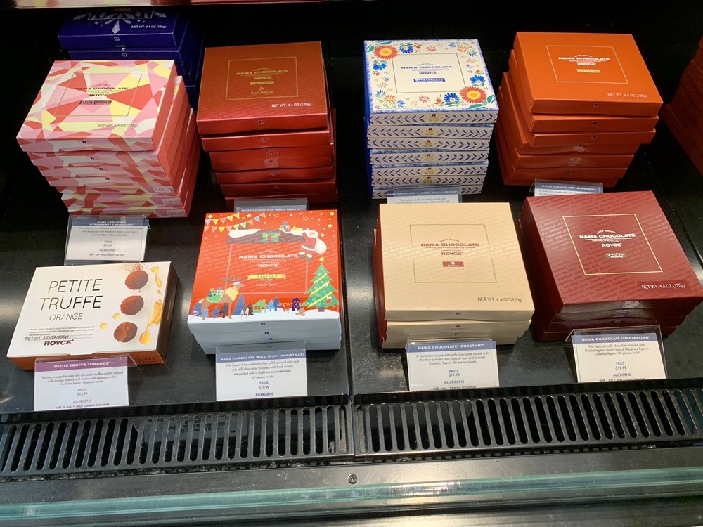 ROYCE' Chocolate at Westfield Valley Fair is a popular boutique offering high-quality Japanese chocolates, including their famous Nama Chocolates, Potatochip Chocolates, and premium gift sets. Customers appreciate the smooth, creamy texture and rich flavor of the chocolates, describing them as some of the best in the world. The staff, exemplified by a knowledgeable and friendly representative, provides excellent service, offering samples and explaining product details, making customers feel like they are in Japan. While the chocolates are considered on the pricier side, many believe the quality justifies the cost, making it a special treat. The variety, especially the matcha truffle and bitter chocolate, is highly enjoyed by visitors. Overall, Royce' Chocolate is seen as a delightful and premium destination for chocolate lovers, offering a taste of Japan's finest confections in the Bay Area.