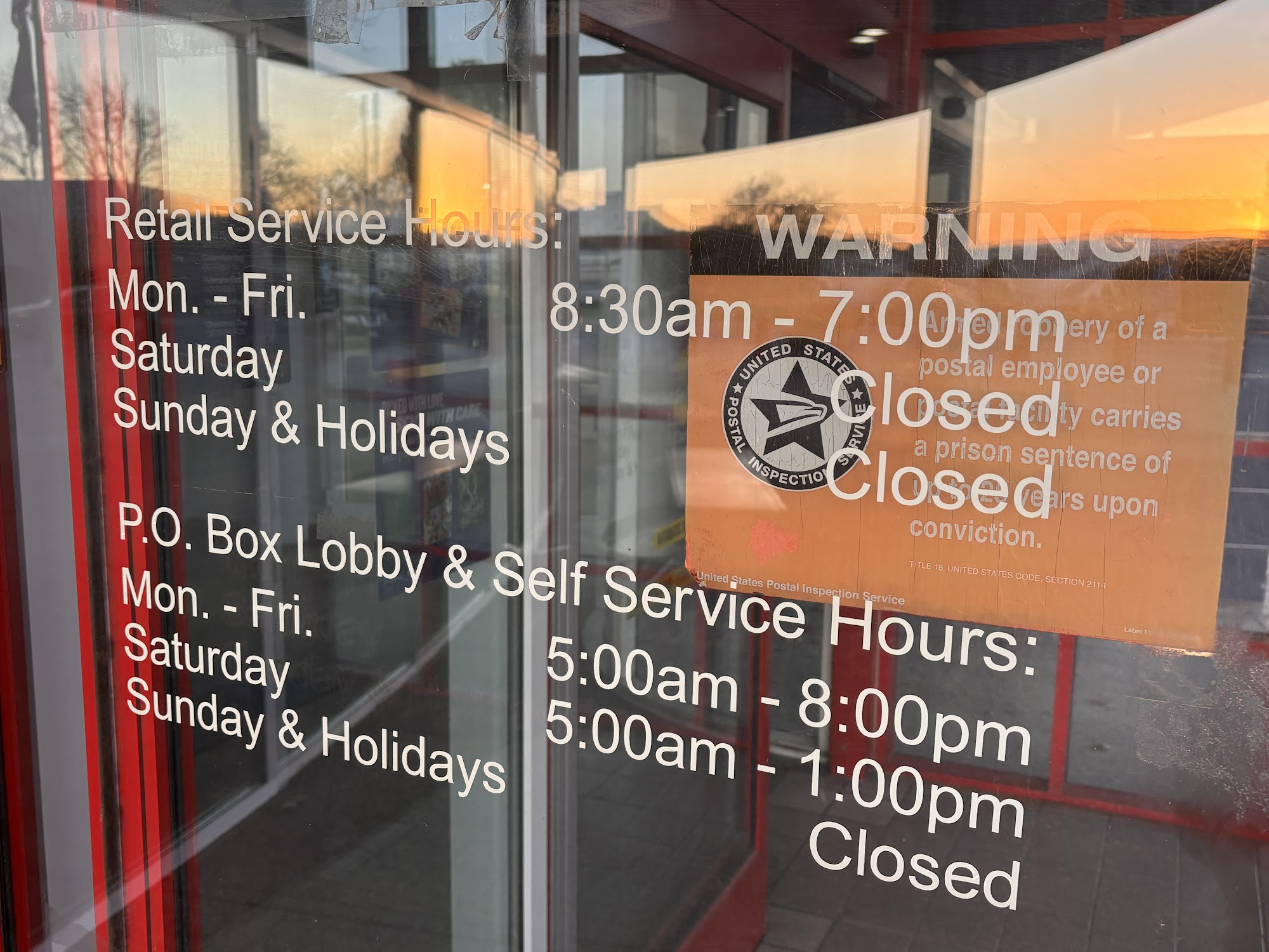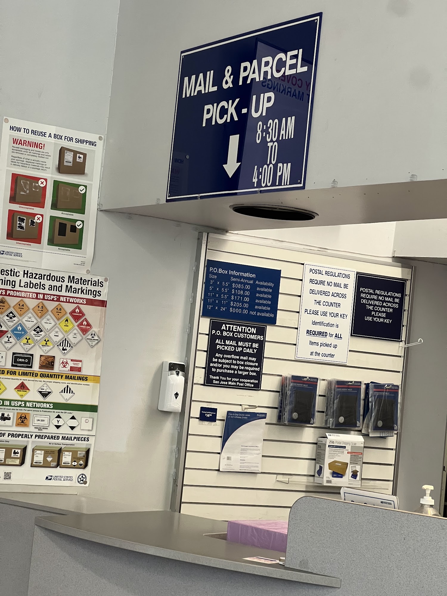 Lobby (Self Service, PO Box) Hours M-F 5am-8pm Sat 5am-1pm Sun, Holidays Closed