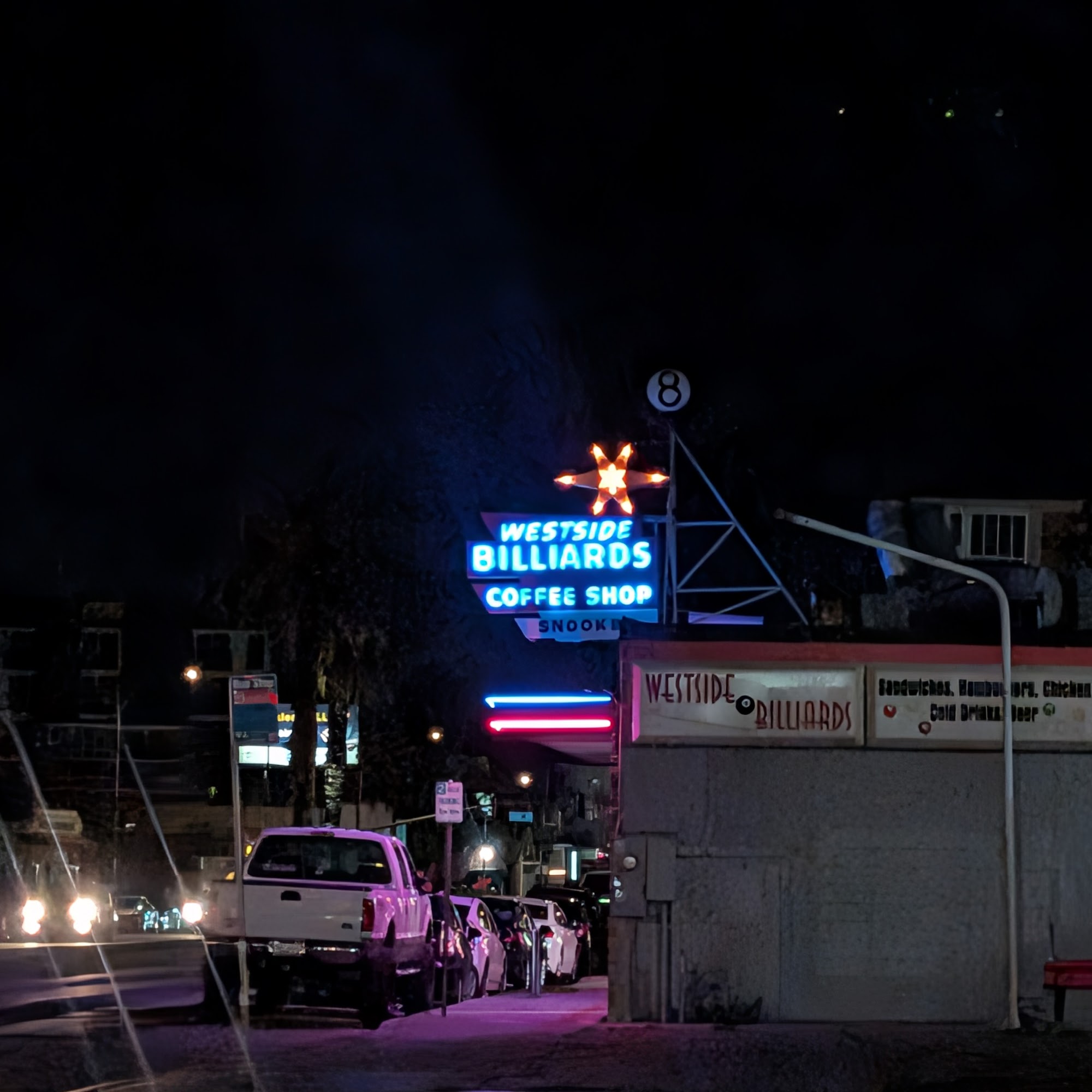 Westside Billiards is a fun spot with a great, mellow vibe and quality, solid pool tables. The service is great and the owners are friendly and engaging. The food is super tasty, including bacon cheeseburgers, garlic fries, chicken tenders, and a grilled cheese with bacon. They have beer on tap as well. It is a local establishment with a welcoming atmosphere for playing pool, watching sports, and enjoying good food and drinks.