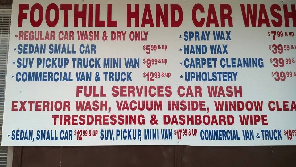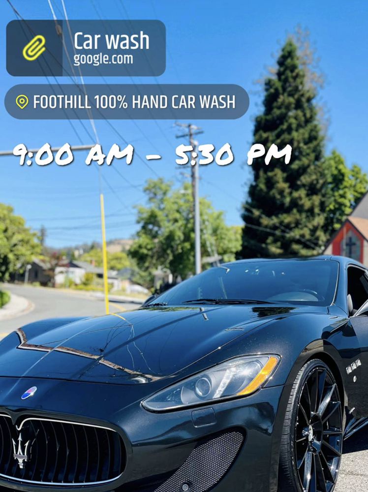 Foothill 100% Hand Car Wash is an amazing place and one of the best hand car washes in the area. They do a solid, meticulous, and pretty detailed job cleaning both the inside and outside of vehicles, using hand wash and pressure washer methods. Customers report their cars looking as good as new, perfect, and clean for years. Service is quick and they work pretty consistently. The price is great and represents good value, with basic services for a sedan around $30 and full service around $40, which includes extensive vacuuming and cleaning. They even pressure wash rubber floor mats. The customer service is kindly and friendly, and they will make things right if a small area is missed. The location is near home for some and a great find. A minor note is that instructions can sometimes be unclear and the payment is made inside the adjacent gas station. Some customers also note the ground can be oily. Overall, it is a highly recommended spot where many plan to return.