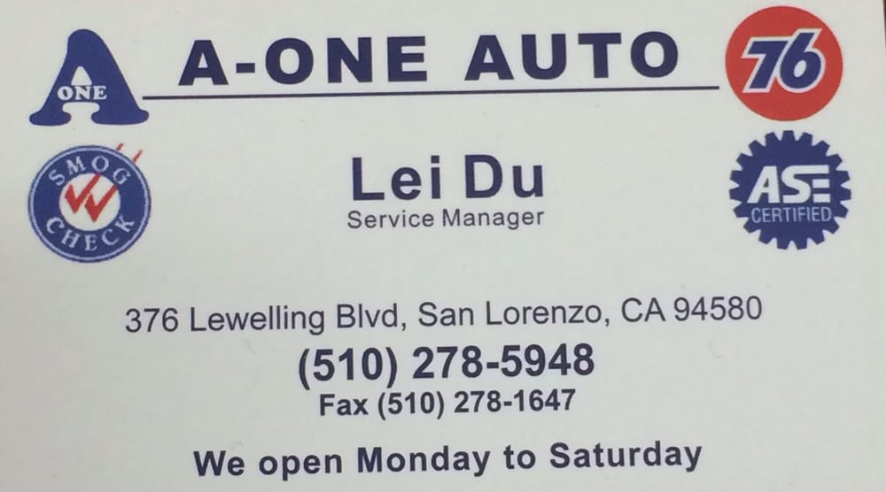 Lei and A-ONE are the best. Their work is excellent, their scheduling reasonable and the prices fair. I used to live in the San Leandro area, but I'm quite a ways away now. I still return when I need my car serviced.