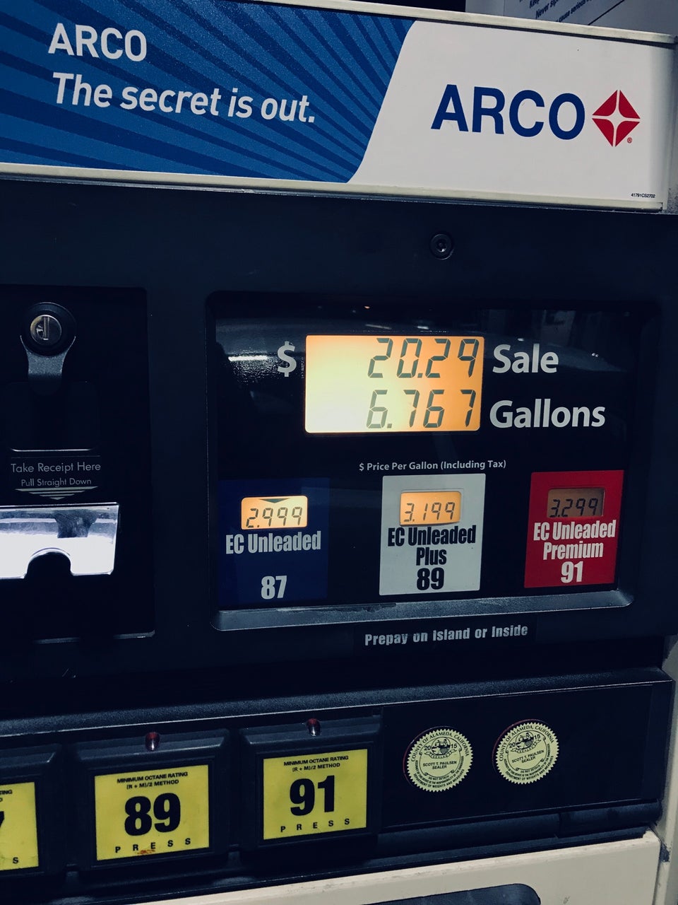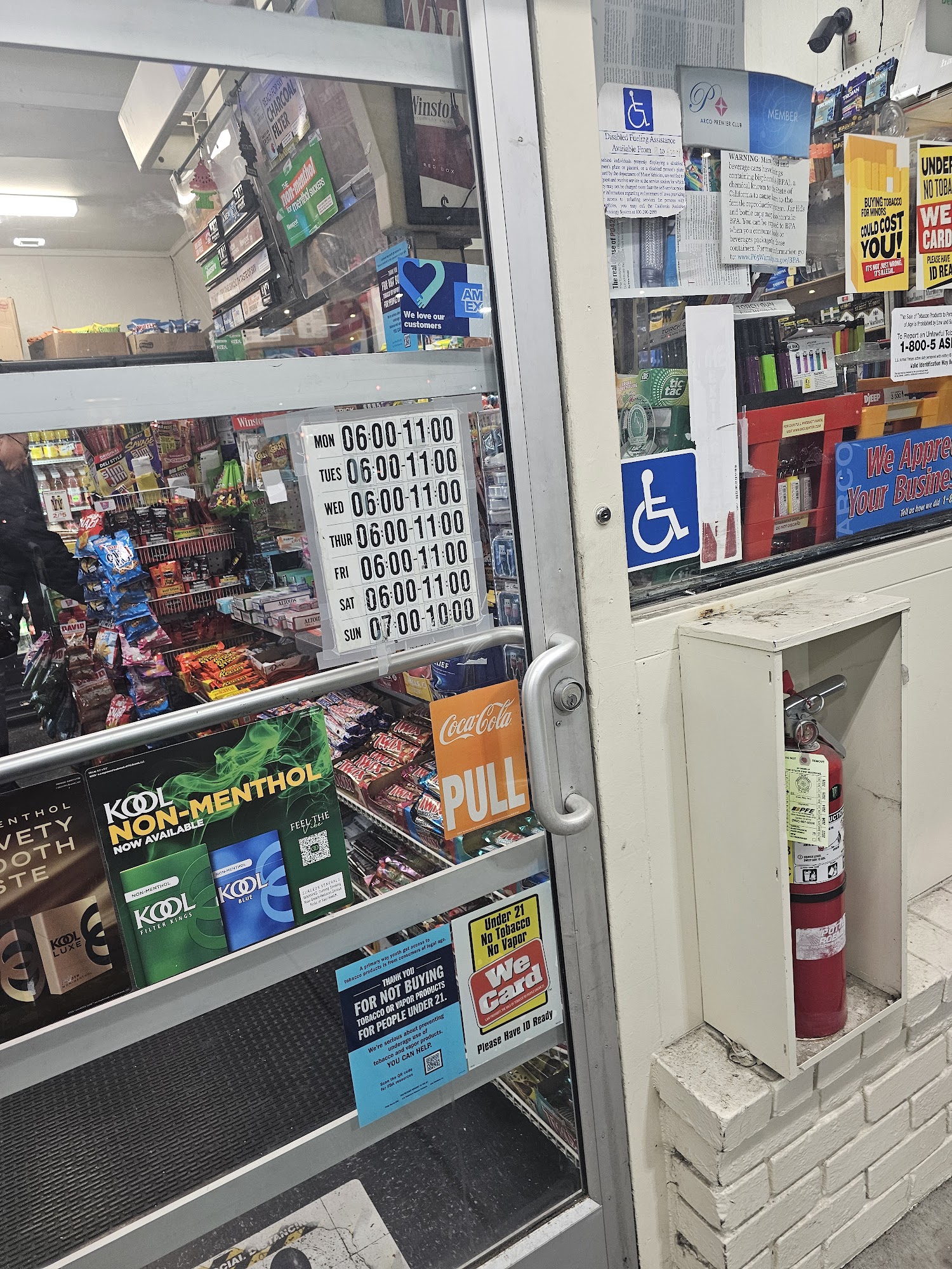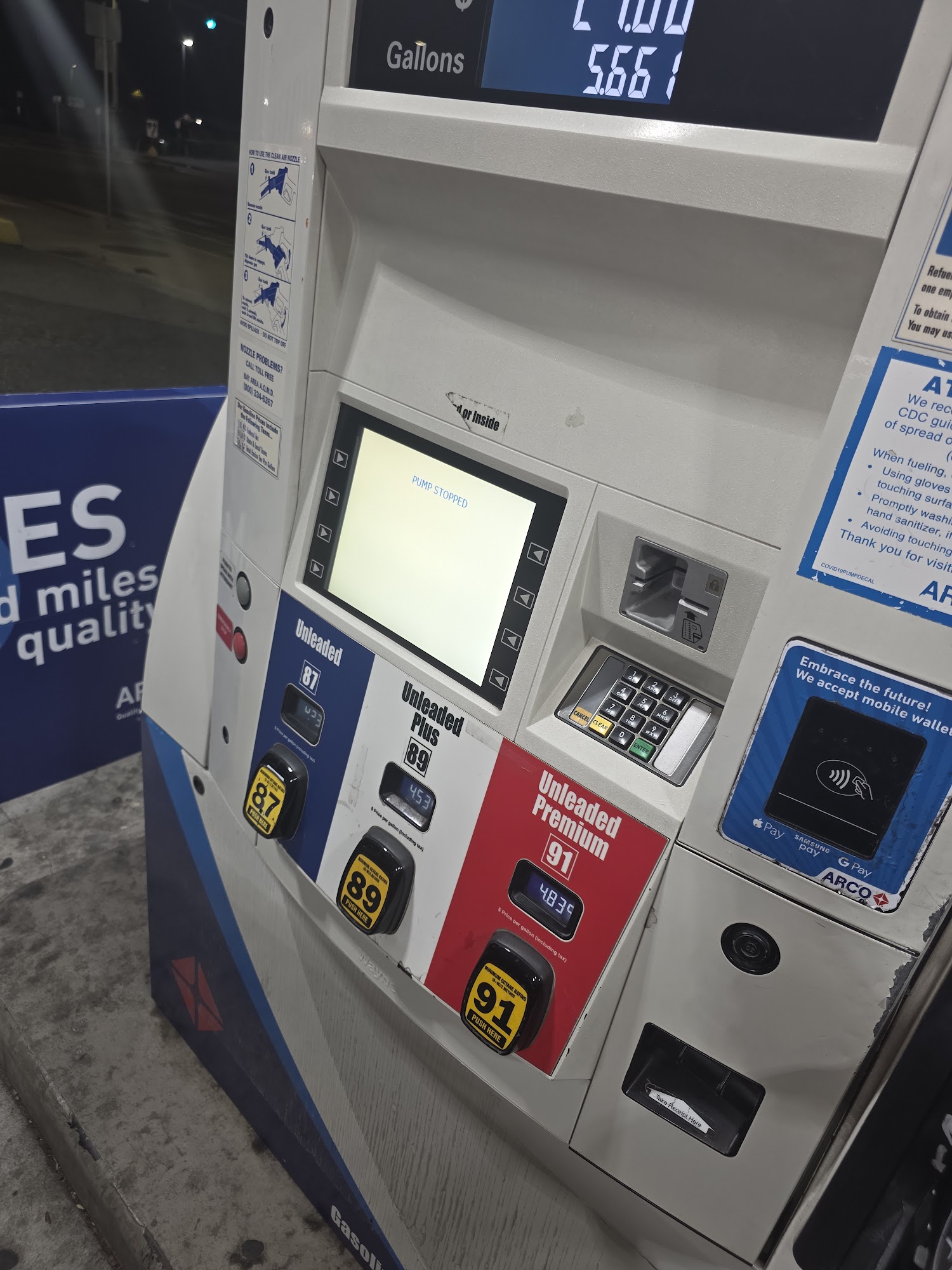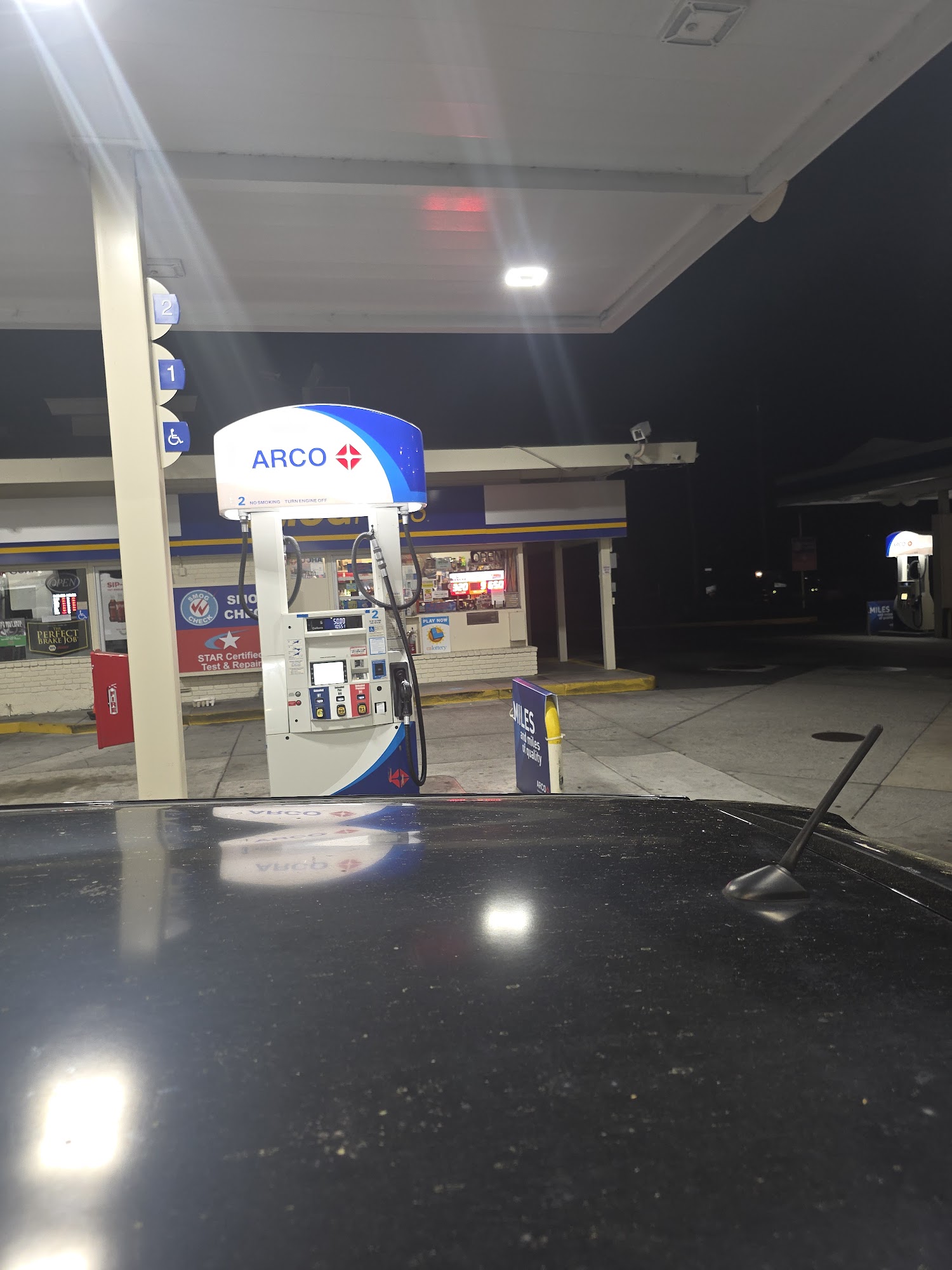 Arco usually has the cheapest gas around but this location seems to make up for that by never fixing their broken nozzle handles. The stay open lock is busted on several and have been for a long time. The window wash buckets are vile and the squeegees are so worn they will scratch your windows.