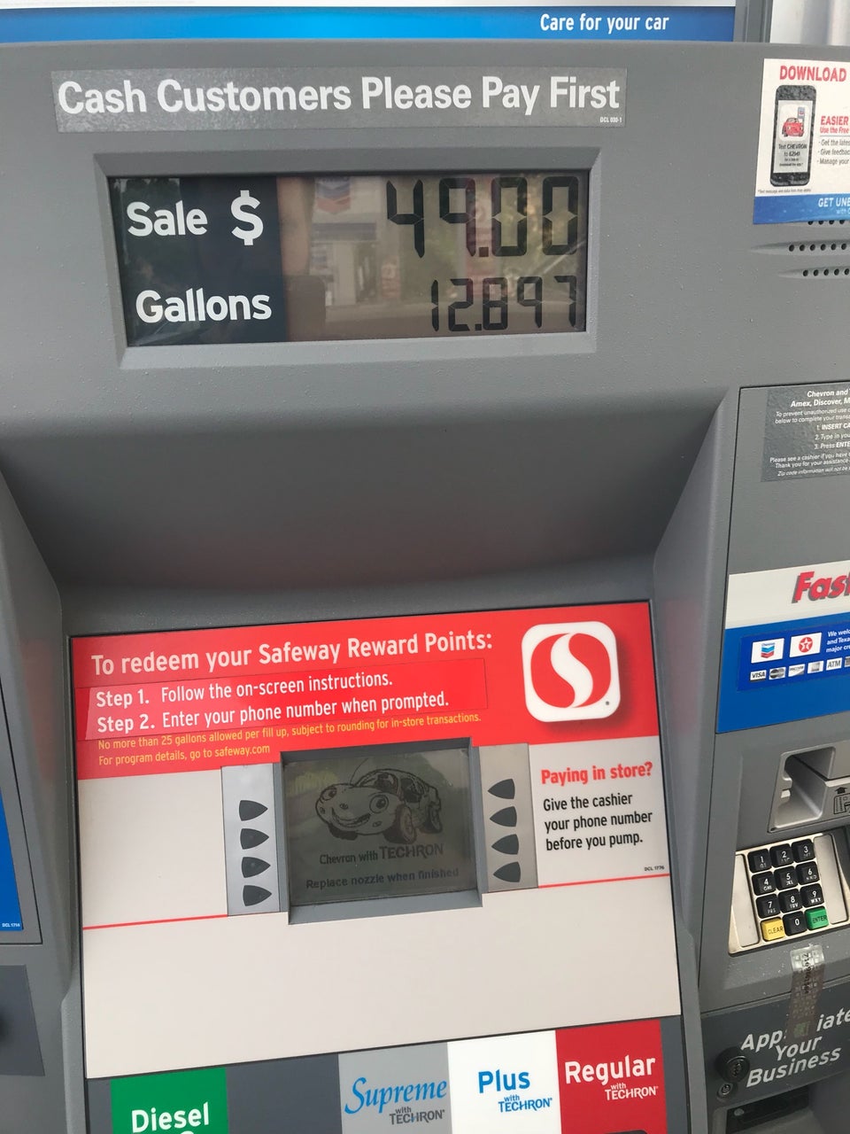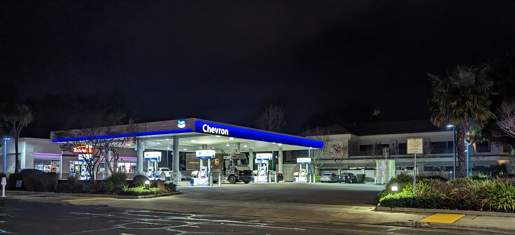 This Chevron is conveniently located right off the freeway, making it easy to get in and out. It has plenty of pumps, so there is less chance of waiting and it does not get too busy, especially at night. The store is clean and well-stocked with snacks and drinks. Customers can use the mobile app to earn points. However, a significant frustration is the car wash, as the Chevron Car Wash subscription does not work at this location, a problem that has persisted for months. While some find it a good place for a quick fill-up and to purchase items, the non-functional car wash service is a notable drawback for subscribers.
