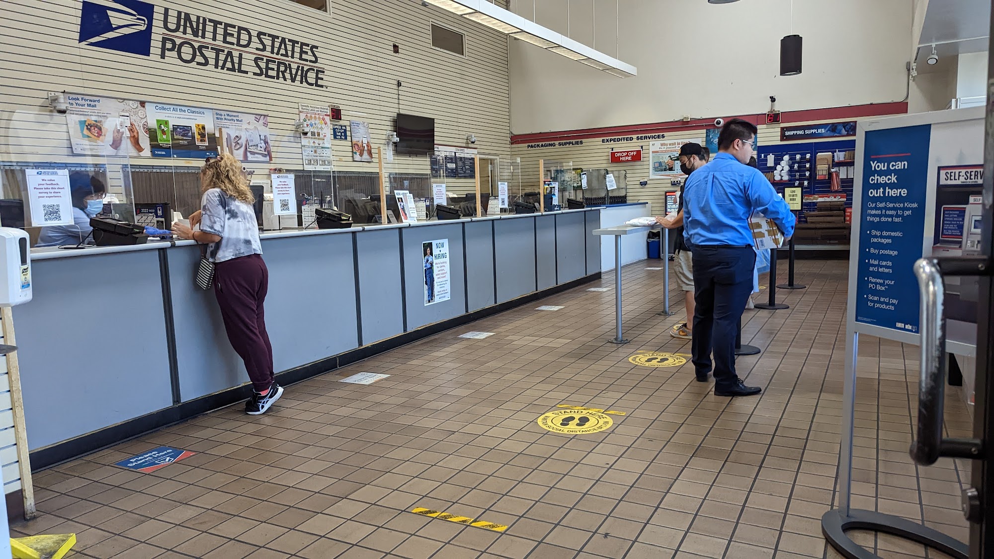 I always come to this post office because they close at seven. Let me just tell you, the staff here is amazing. They work so hard and have so much patience for what they have to put up with. My fav is Liz (I think that's her name), she is always so friendly and helpful when i come in.