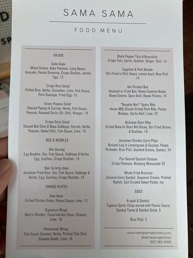 Best for Downtown Santa Barbara's Best Restaurants Because: Sama Sama Kitchen serves up Indonesian flavors that are unique in the Santa Barbara area. Best for Group Friendly Because: Long tables on the shady back patio make this the perfect spot for an informal gathering with friends and family. Best for Outdoor Dining Because: Long communal tables lit from above by strands of twinkling lights make Sama Sama's garden-situated patio a wonderful place for parties.