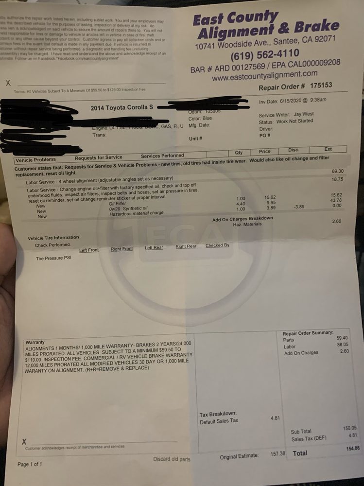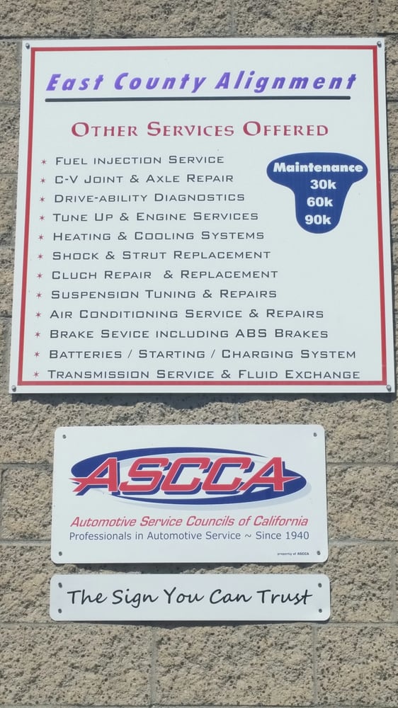 East County Alignment & Brake is a highly recommended auto repair shop that has earned the trust and praise of many satisfied customers. The team at East County Alignment & Brake is known for their diligence, going above and beyond to ensure customers' vehicles are in top condition. Customers have reported that the shop's staff is friendly, thorough, and informative, taking the time to explain issues and provide solutions. The pricing is fair, and the quality of work is exceptional, with customers noting that their vehicles now handle like a dream after receiving services such as alignments, brake repairs, and suspension work. The shop's commitment to customer satisfaction is evident, as they have accommodated customers' schedules and even provided courtesy rides when needed. Overall, East County Alignment & Brake is a reliable and trustworthy choice for all your automotive repair needs, earning the loyalty of many long-term customers.