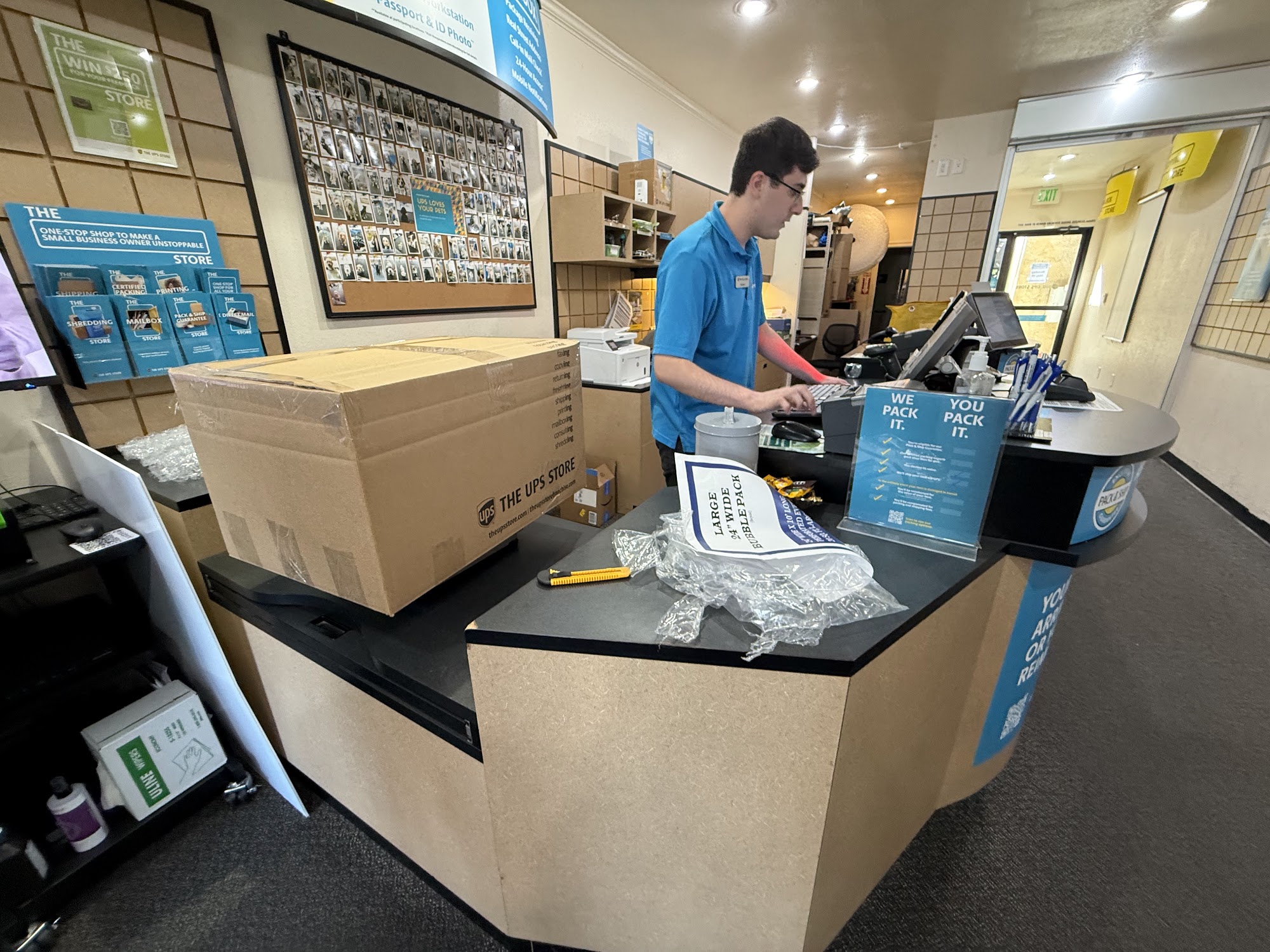 The young man who helped me today (7/7 am) was fantastic. He multitasked to reduced my wait, assisting 2 customers at same time on different computers. Super efficient and courteous-much appreciated. Thus is my go to UPS store.