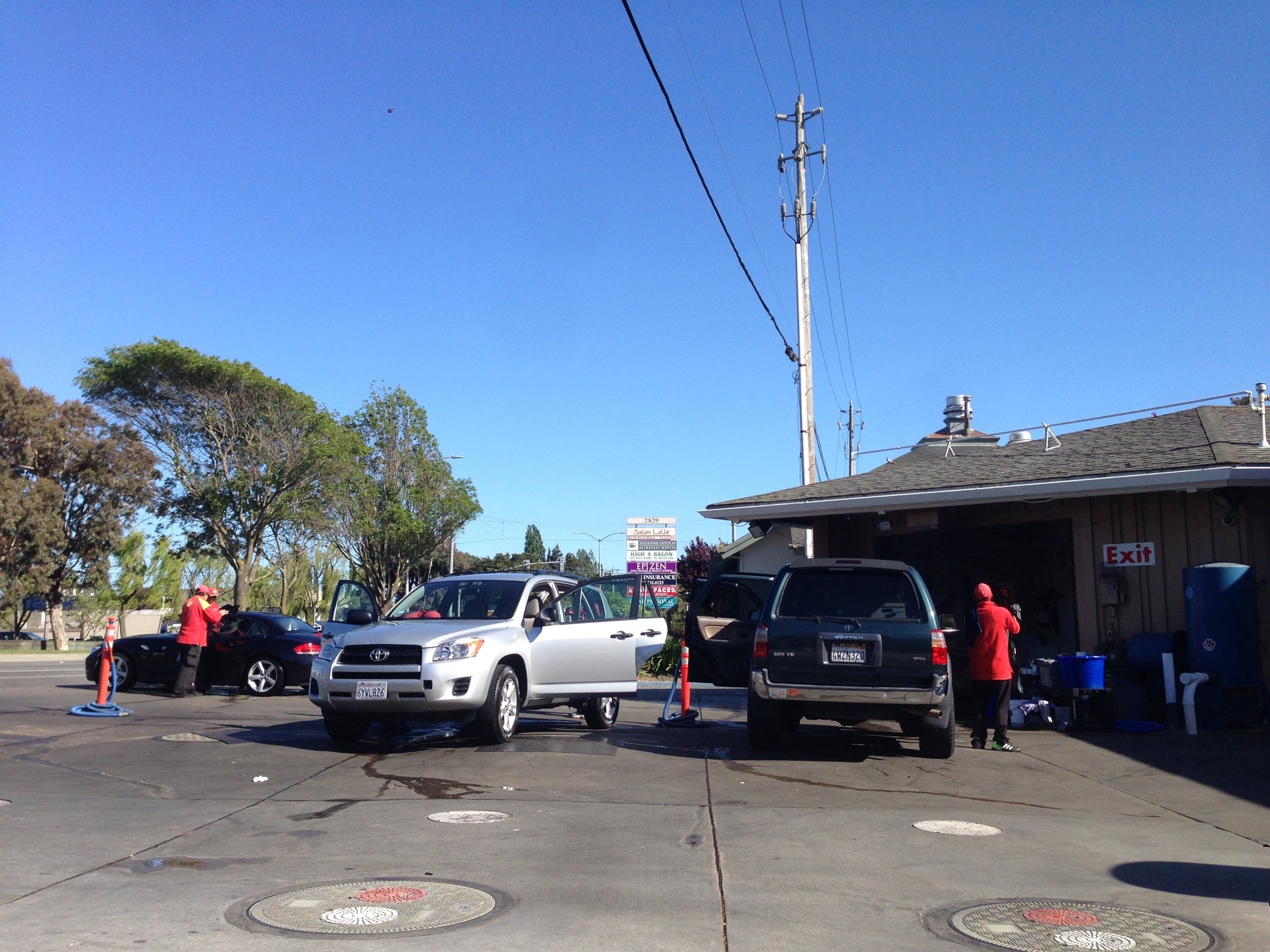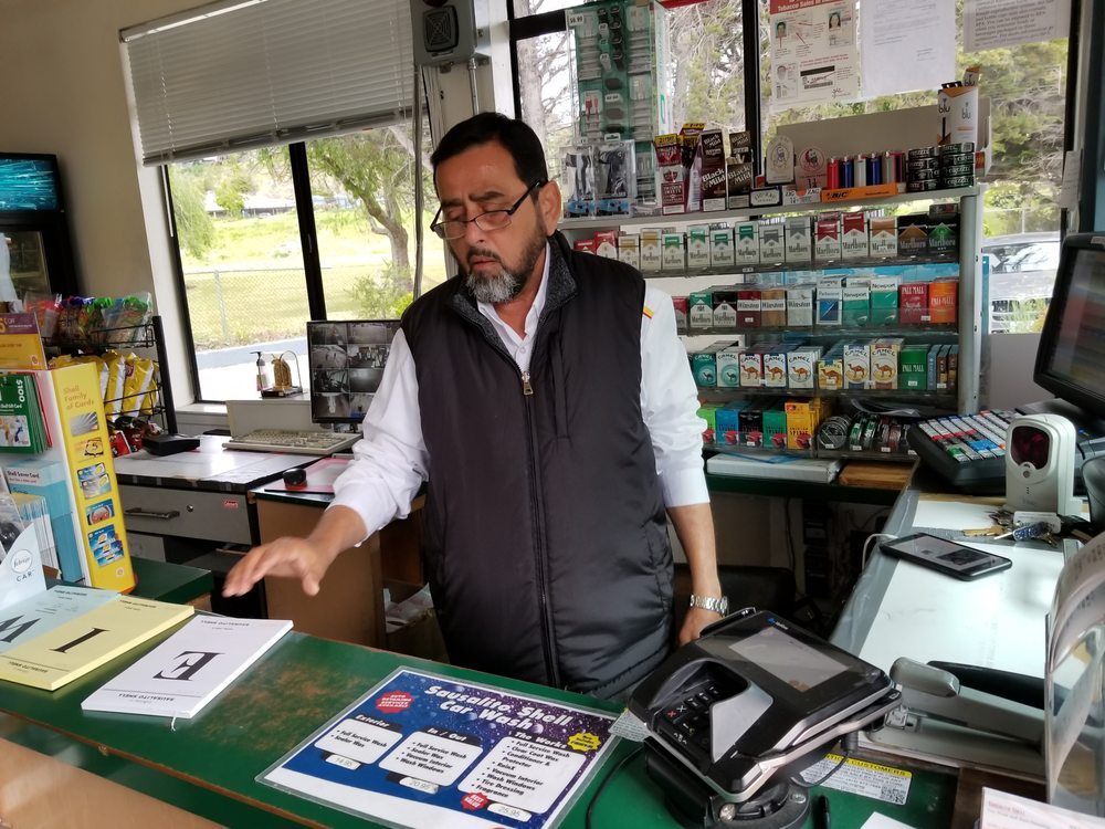 Although this place has higher gas prices, it is clean and the windshield squeegees are in good order and they have free air and free vacuum cleaners. Well run and never too busy.
