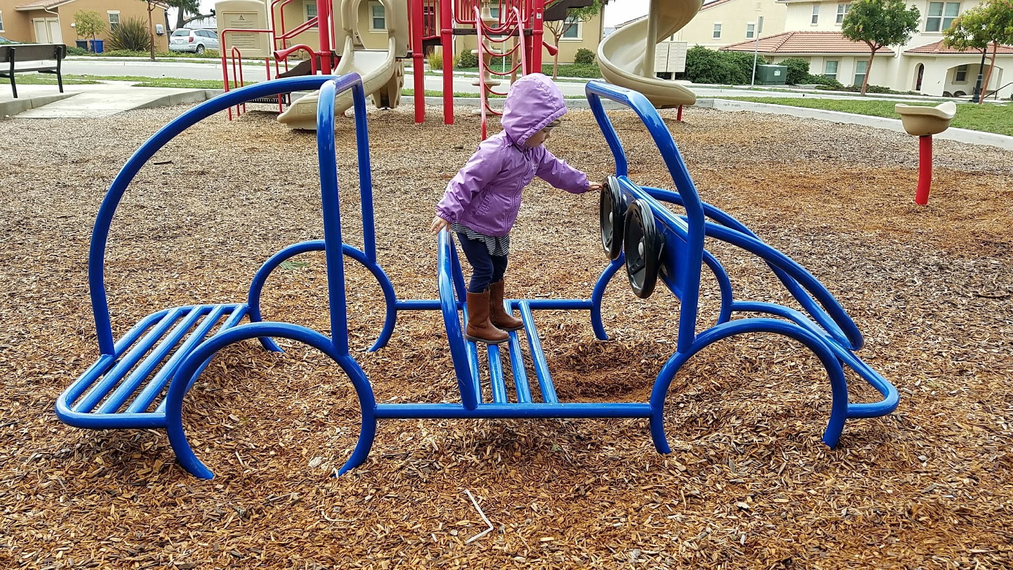 Great spread of play structures. Tables, bathrooms, a fenced dog run, basketball court, some sort of wallball,Restrooms: Two unisex restroomsDog-friendliness: Fenced dog area. Used to be better, but it still functions.Picnic area: Multiple tables in multiple locations