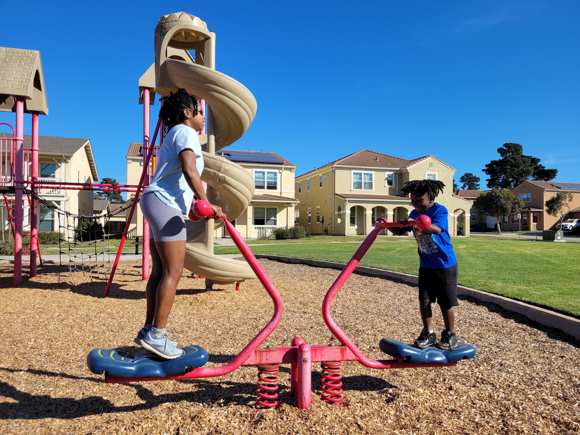 We love the super park! Having a big and little play structure is SO nice! Big and Littles are able to safely play and stay entertained.Dog-friendliness: There is a fenced dog park available, dogs must be leashed outside the fenced area