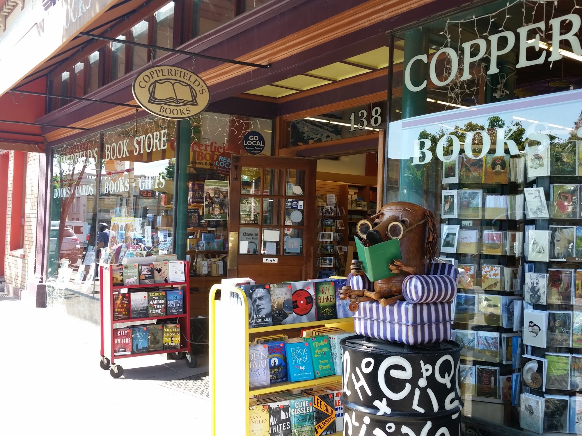 Copperfield's Books is a cute, cozy, and magical independent bookstore on Main Street in downtown Sebastopol. It is a great local bookstore with a wonderful and knowledgeable staff that is always friendly, kind, and helpful. The store offers a great selection of books, including old favorites and new favorites, with a good-sized and very large children's section. This section has a wide array of genres, plus lots of books, plushies, and educational toys. There are also lots of cool little trinkets and games. It is an enjoyable place to browse, with a seating area inside. While new books are a bit pricey as expected, it is a nice and cozy place to read a book over a cup of coffee or tea. Visitors should note there is a small charge for bags.