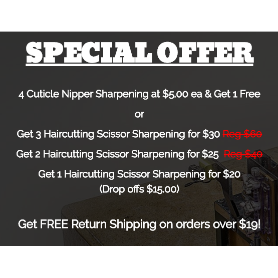 Are your favorite scissors, clippers, or shears dull? Don't buy new ones. Have me sharpen them, so you can love them again! Maintaining the manufacturer's original sharpened angle is especially important. Call today to keep your blades nice and sharp!