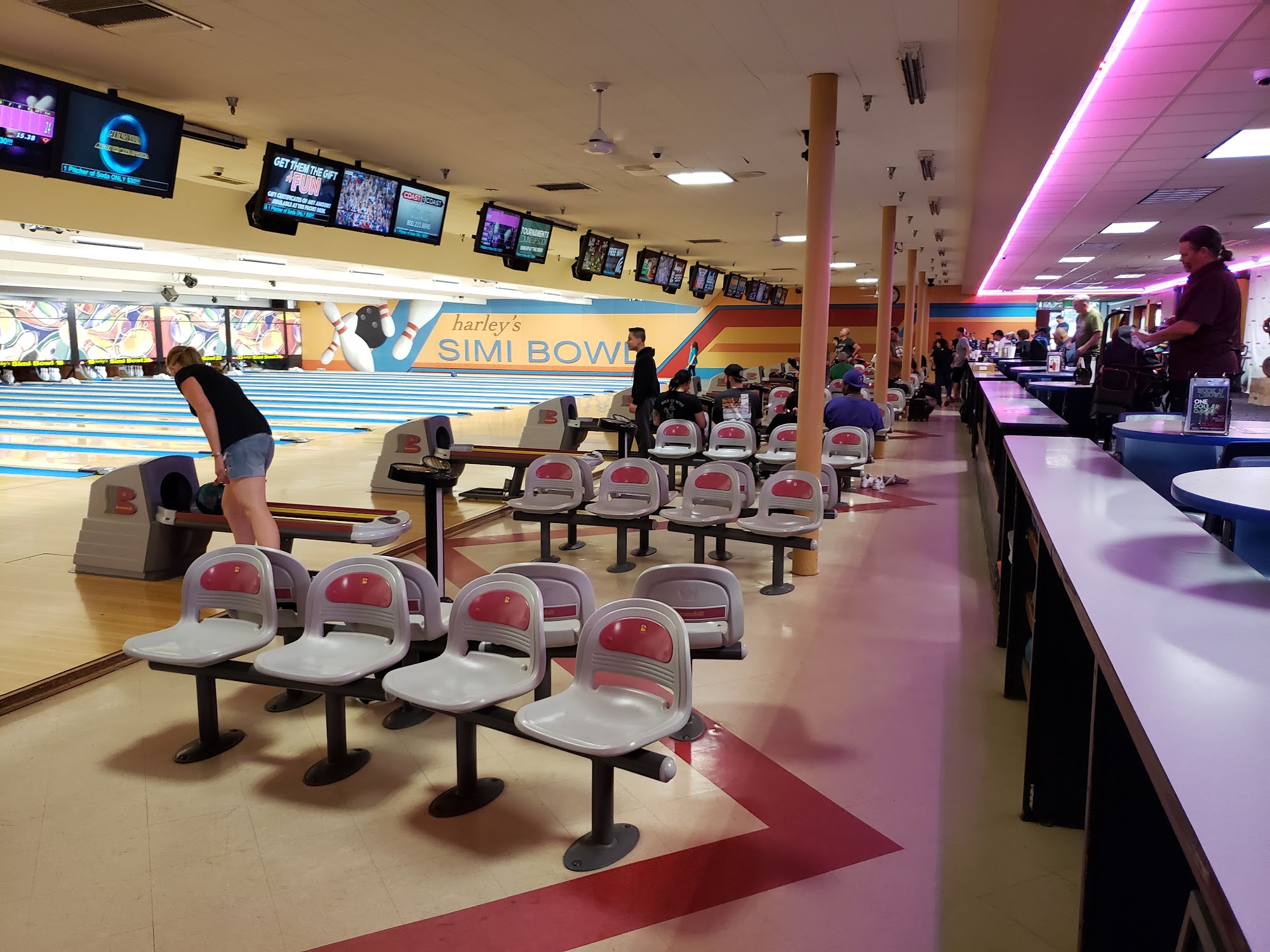Harley's Simi Bowl is a vibrant 24-lane bowling center known for its leagues and parties, featuring a full bar, arcade, and delicious food from Rock and Roll Pizza. Guests appreciate the friendly and helpful staff, making every visit enjoyable. Many have celebrated New Year's Eve here, enjoying great pizza, cocktails, festive items, and meaningful raffle prizes. First-time visitors find the atmosphere fun and welcoming, with huge pizza slices that are a hit. The dedicated kitchen staff, particularly noted for their hard work, manage to serve quality pizzas even during busy events. With years of happy memories and celebrations, Harley's Simi Bowl remains a favorite spot for families and friends alike.