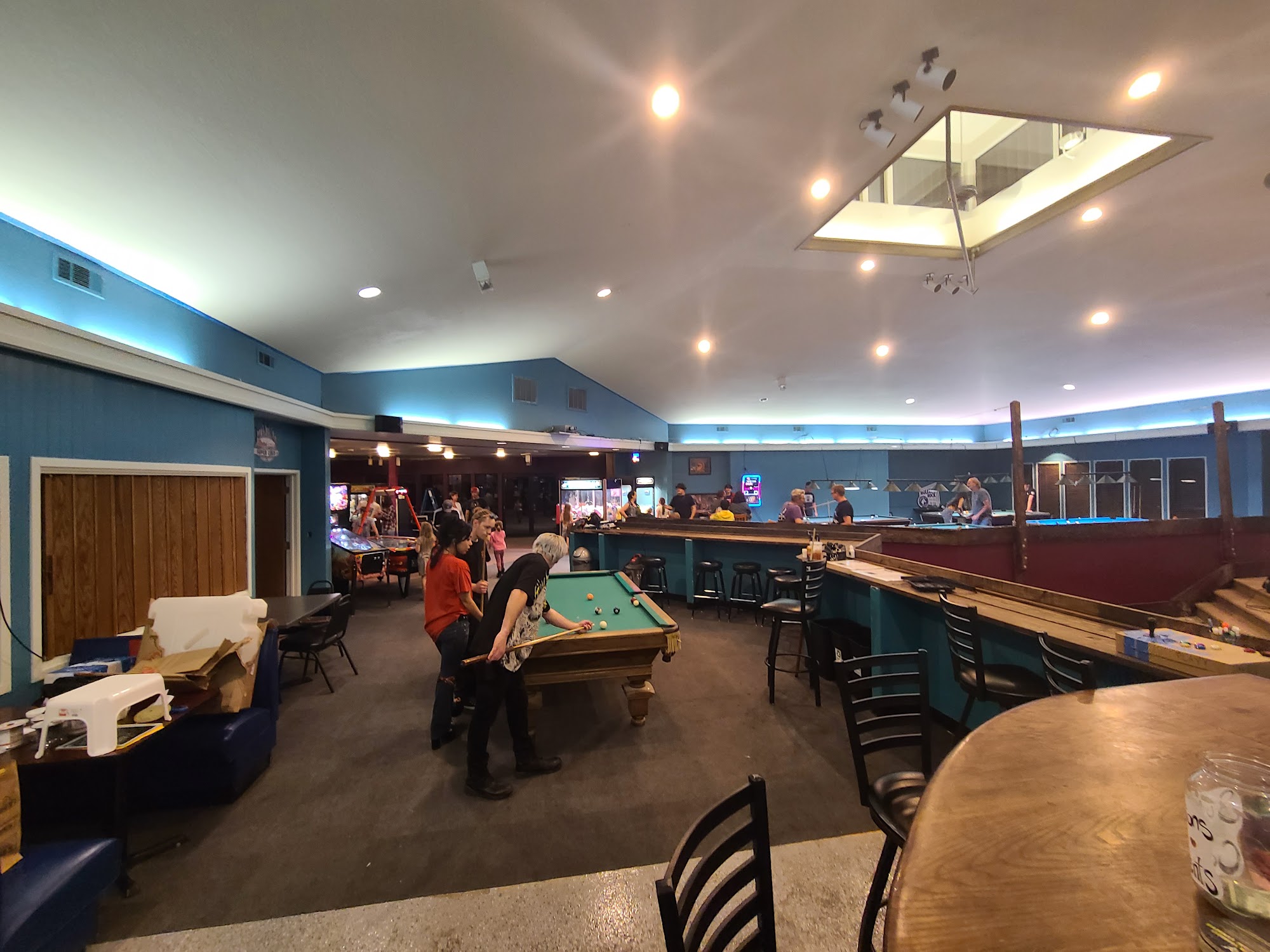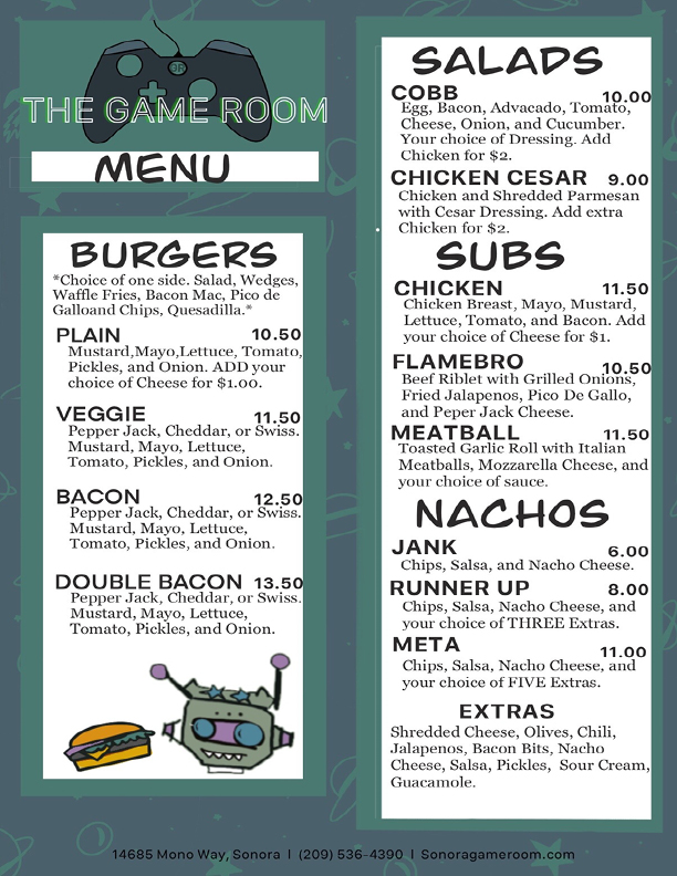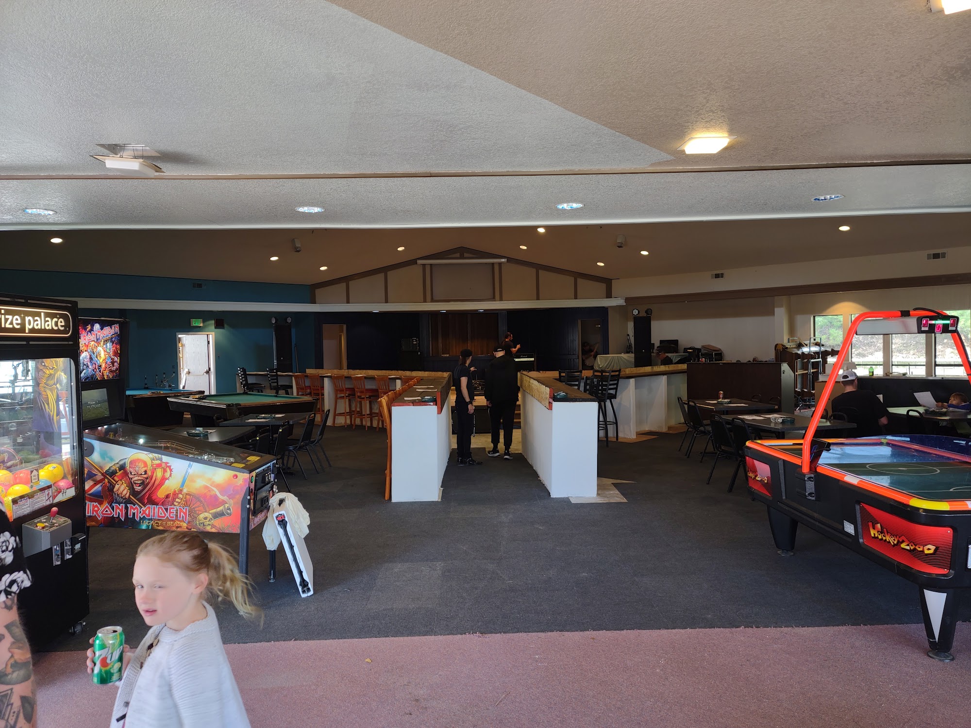 The Game Room is a family-friendly venue suitable for all ages, offering a variety of entertainment options such as pool, arcade games, air hockey, darts, ping pong, table games, shuffleboard, and console games. With over 100 beers available, it boasts the largest beer selection in Tuolumne County, catering to all tastes, including those of refined beer enthusiasts. The Game Room hosts live events every Saturday, featuring stand-up comedy, rock and roll, and open mic nights. Regular tournaments for 8-ball, beer pong, and trivia are also part of the fun, along with Wino Bingo and karaoke nights. Visitors appreciate the lively atmosphere, especially during events like Thursday night free bingo, where guests enjoy great prizes, food, and drinks. The Game Room has been recognized for its community support, sponsoring local events like the Arm Wrestling Fundraiser. While some guests noted minor issues like a lingering smell and unfinished decor, the overall experience is enjoyable, with friendly staff and a vibrant music scene that invites everyone to unwind and have a good time.