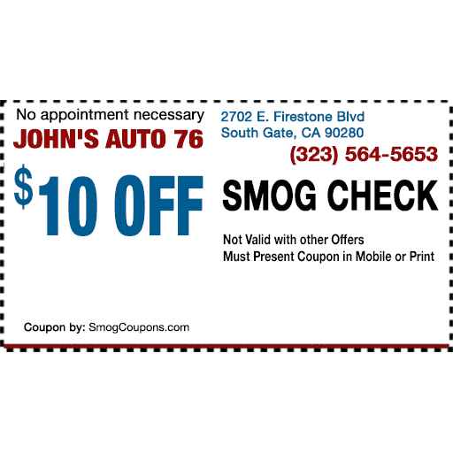 John S Auto 76 is located in South Gate, CA. We offer: SMOG CHECK: DMV Smog Check, smog inspection, Smog Test Repair, smog check Out of state vehicle registration, Diesel smog check, smog check Coupon, Registration renewal smog check, Gross polluter certification, Change of ownership smog test. Complete Auto Repair: Oil Changes, Tune Ups, Engine Repair, Engine Replacement, Engine Performance Check, Computer Diagnostics, Electrical System Diagnostics & Repair, Transmission Service & Repair, New and Rebuilt Transmissions, Tires, Wheel Alignment, Brake Repair, Factory Scheduled Maintenance, Suspension and Steering Repair, Shocks & Struts, Cooling System Service & Repair, Exhaust Systems & Mufflers, Pre purchase inspections, and more.