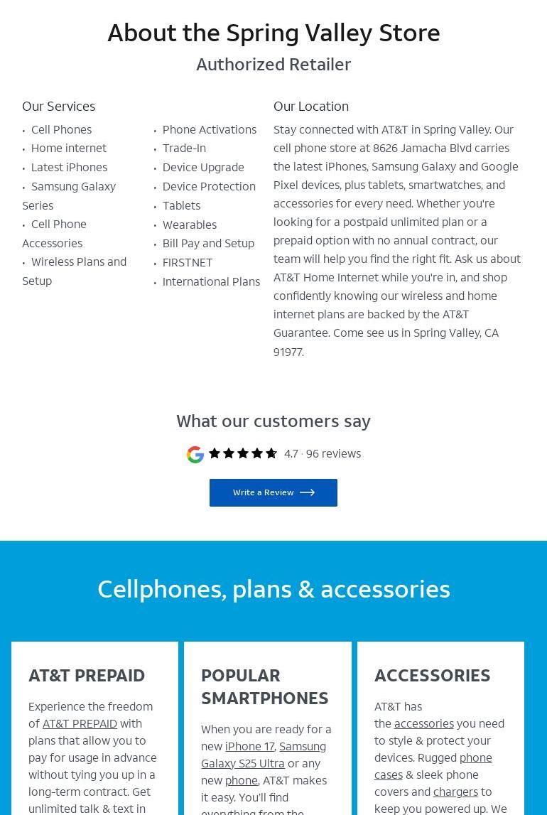 The AT&T Store in Spring Valley offers a wide range of phones, tablets, smartwatches, and connected devices from popular brands, along with flexible wireless data plans. Customers appreciate the efficient service provided by staff members like Marvin and Daniela, who are recognized for their professionalism and ability to help with upgrades and purchases. Many reviews highlight how quickly customers are assisted, often leaving the store satisfied with great deals and new devices. However, there are concerns regarding the management, particularly regarding a recent return experience that involved long wait times and lack of effective customer service. While Daniela’s efforts were praised, the store’s management is noted as needing improvement in handling customer issues. Overall, the AT&T Store has a friendly atmosphere and knowledgeable staff, making it a recommended choice for those looking for devices and plans in Spring Valley.
