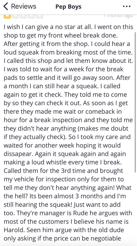 I really want to thank Andres for his service. He went to extra mile and called me the next day to make sure everything was going well and I really appreciate that. Thank you Pep Boys so much for making my experience a good one.