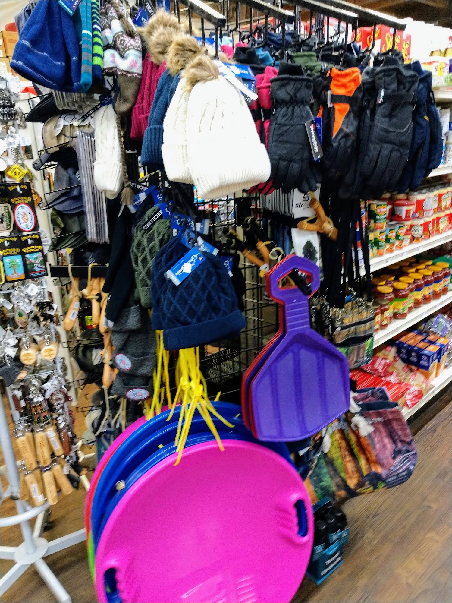 Groceries, fuel, propane canisters, wood, souvenirs and hot food on the grill.