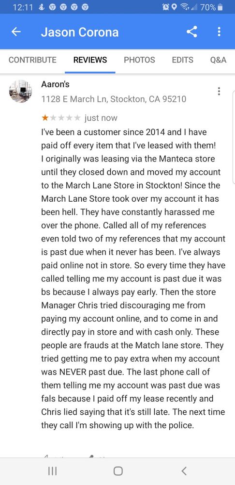 Aaron's offers a way for people to purchase good stuff for their homes even if they don't have the best credit. They make it possible for folks to get quality home furnishings, electronics, and more. While not the cheapest store for price, Aaron's provides a chance for those rebuilding their credit. Customers report great experiences with professional staff. One location, in particular, is described as having a helpful and professional individual who made a purchase a breeze. This individual was polite and a pro all the way through. Another reviewer received excellent service upon entering the store, noting it was fresh, clean, and well-stocked. Their application was done online, which seemed to make the process smooth and easy. They chose their washer/dryer and were out the door quickly, with fast, on-time, and efficient delivery. The appliances were set up and tested, leading to a very happy transaction. Aaron's has lots to choose from and is recommended to anyone looking to buy furniture or electronics without great credit.
