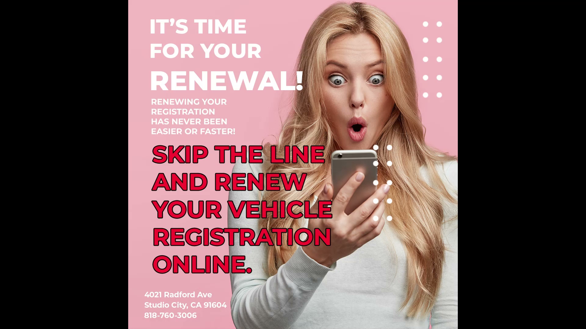 DMV Auto Registration Services is a licensed, bonded, and insured auto registration office in Studio City. It provides services including DMV renewals, title transfers, out-of-state registration, VIN verifications, and smog checks. Reviews describe it as the best place to go, with amazing, friendly, and nice customer service. The service is consistently noted as quick, easy, very knowledgeable, and direct, handling complex tasks like messy title transfers or out-of-state registration in 15 to 20 minutes. While pricier than the DMV, customers find the convenience worth the extra money to skip the DMV lines and roadblocks.