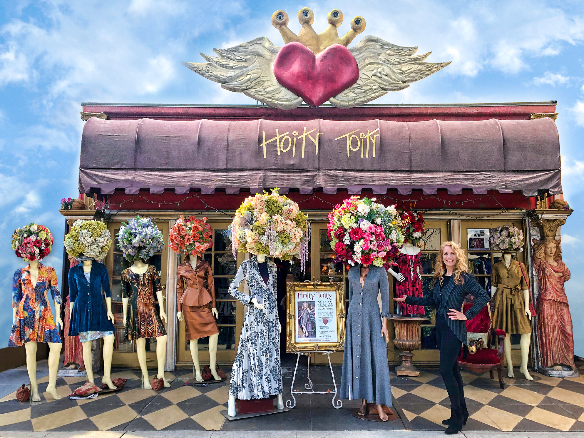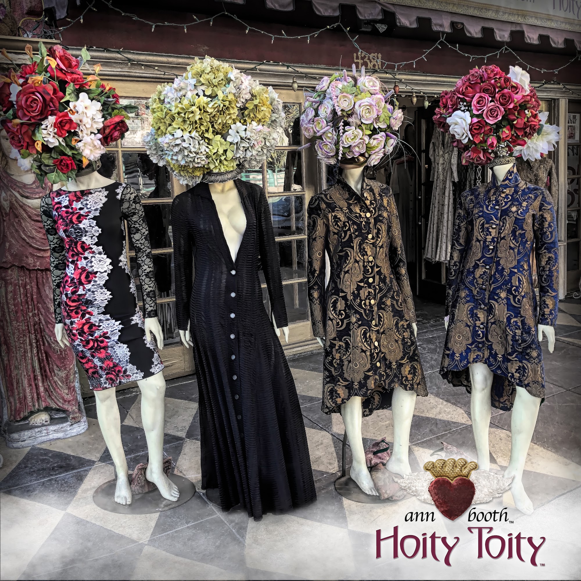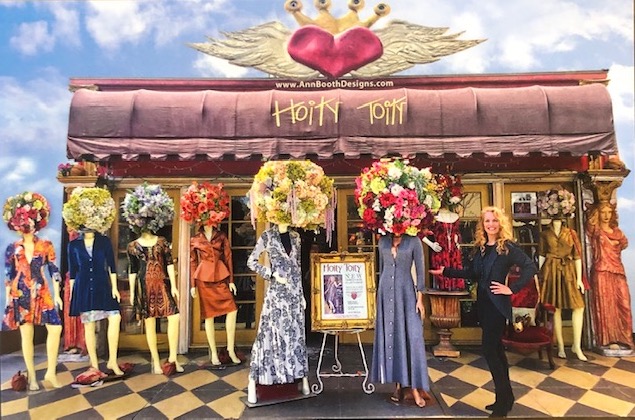 Handmade clothing: Owner designer Ann Booth Luly, designs the clothing, shops for fabric and her fancy fun buttons, she sews the bags, purses, hats and functional art, which are bodice lamps that she sells in her boutique called Hoity Toity. She has had her business since 1994. Ann Booth Luly has created an Alice in Wonderland atmosphere and when people walk in they say, I feel like I have been hugged and loved all at once. Ann’s business caters to all walks of life, she has been told hundreds of times that once her clients / Friends wear her designs it gives them confidence in the work they do and in their everyday life and just makes them happier humans. Her designs are reminiscent of eras gone by.