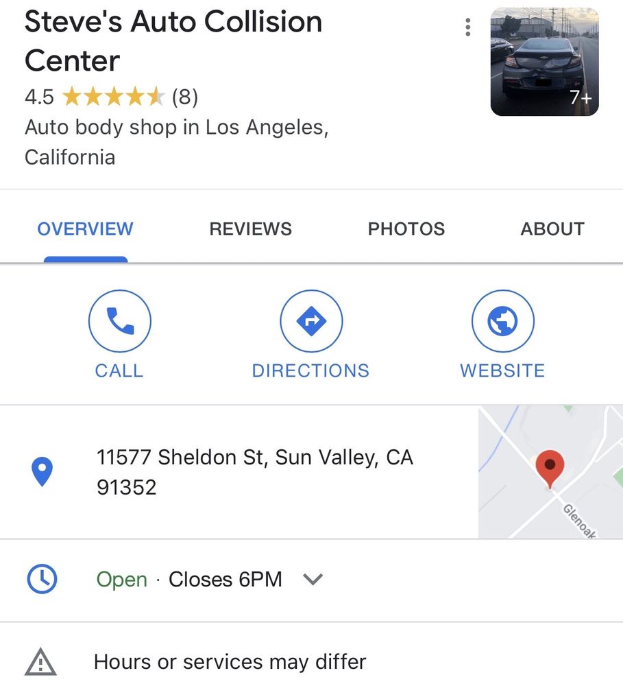 Steve's Auto Collision Center provides very quick service and amazing auto body repair. The work done is like new and perfect before handing the car back. The service is highly recommended for quality work and service. They are very attentive, give updates, and ensure amazing service. It is always a pleasure working with them. For convenience, a car is provided while repairs are completed. They are humble, know what they are doing, and offer the best service.