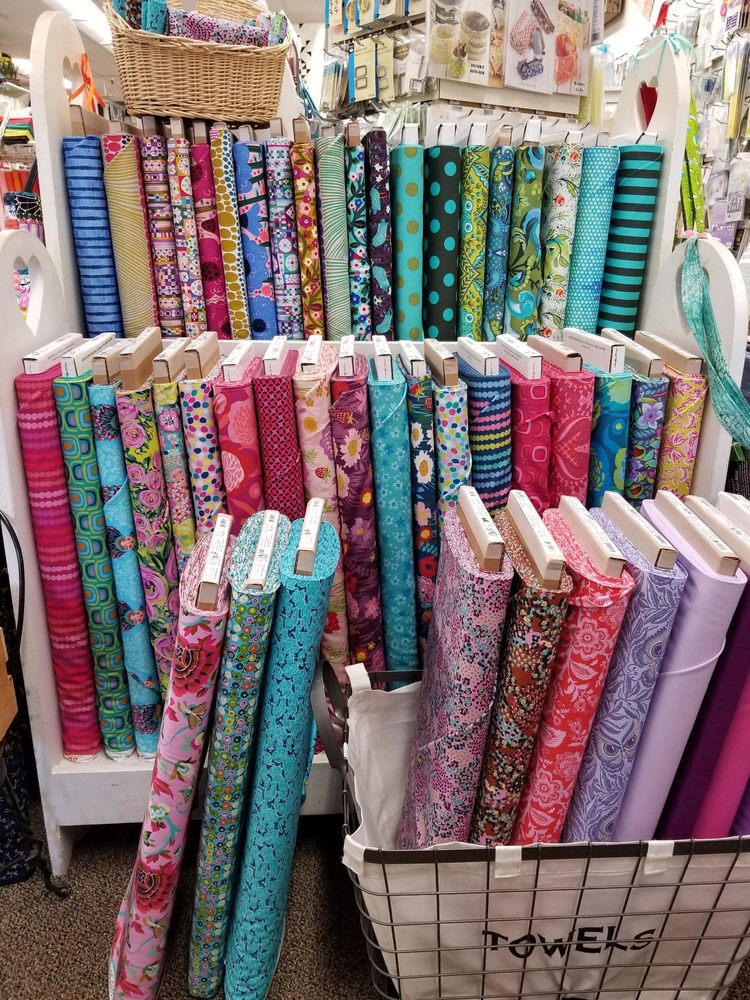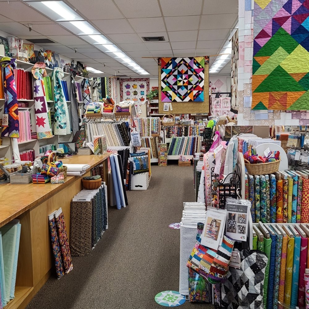 Good sized quilt shop, a bit higher priced but really good selection. Workers were very kind and welcoming I would definitely go back for the late classes.