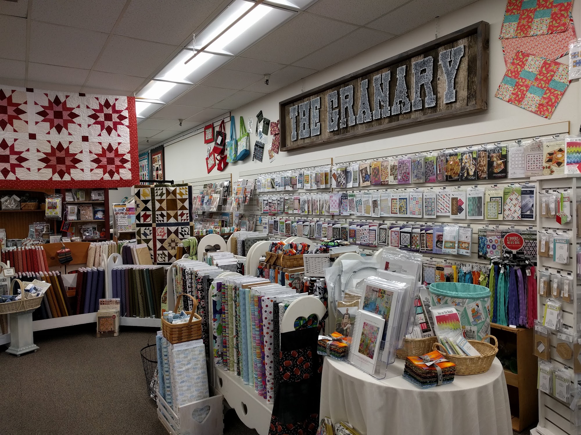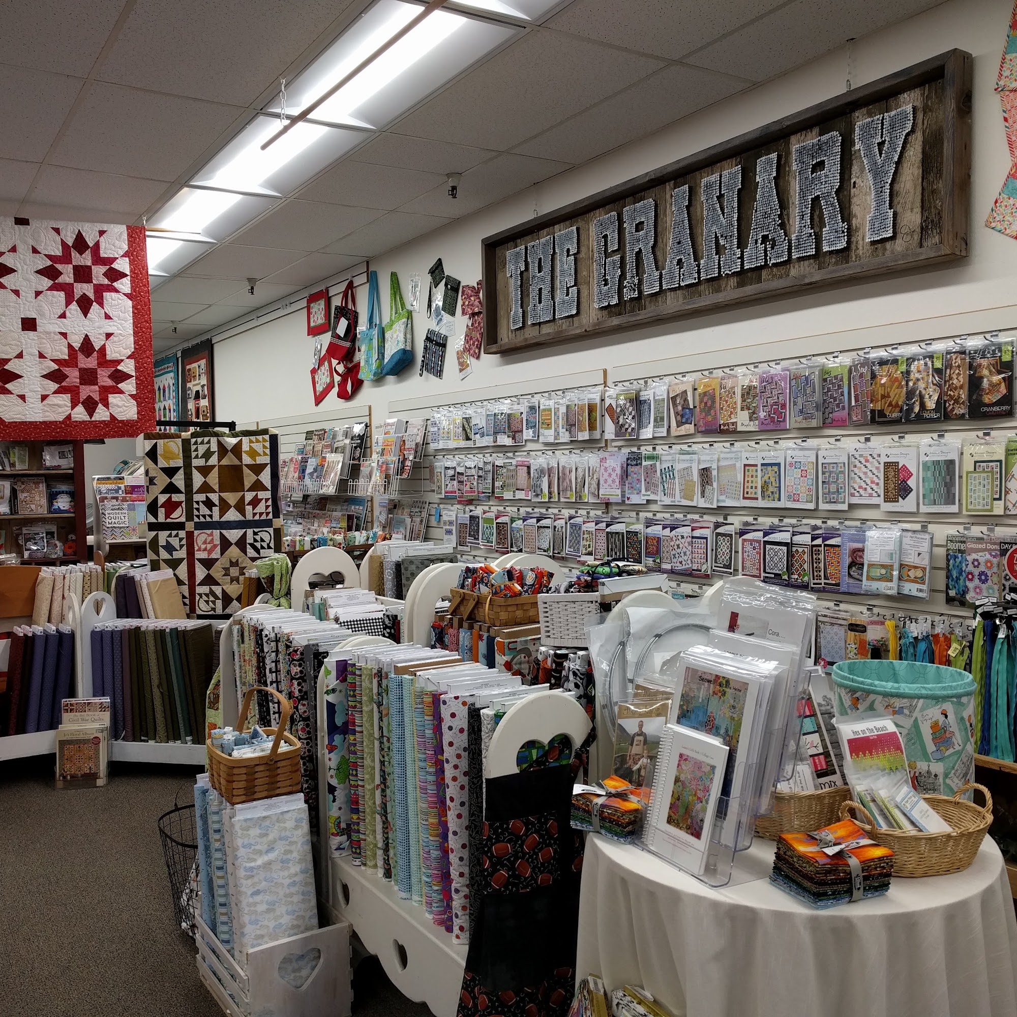The Granary Quilt Shop is a welcoming quilt shop located in Sunnyvale, California. It offers a great retail space for fabric and a bright classroom. The shop has a great, wonderful, and abundant selection of fabric and supplies, with fun notions and gadgets. The inventory is displayed extremely well and is current with items in the industry. The staff are very helpful, courteous, knowledgeable, and happy, always ready to answer questions and offer ideas with genuine interest. Many find it their favorite quilt store and happy place, always finding what they are looking for and more treasures. The shop also offers classes and Kids Summer Camps, as well as enjoyable Weekend Getaway retreats. It is a very special shop that has never disappointed visits.