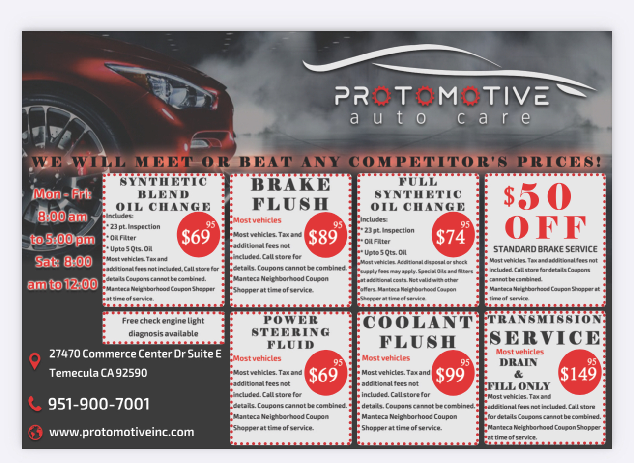Protomotive Inc. is an honest auto shop with reasonable prices. They provide great, quick service and do not try to sell unnecessary things, though they will still bring potential issues to your attention. Customers report receiving high quality work for significantly less money than dealerships, with services like brakes, rotors, and oil changes completed quickly and efficiently. The customer service is exceptional, described as helpful, amazing, and going above and beyond, with convenient options like after-hours drop-off and phone payment. The shop is highly recommended for vehicle service. Some note the location is sort of hard to find and has no cell service, but this does not detract from the strong overall recommendation.