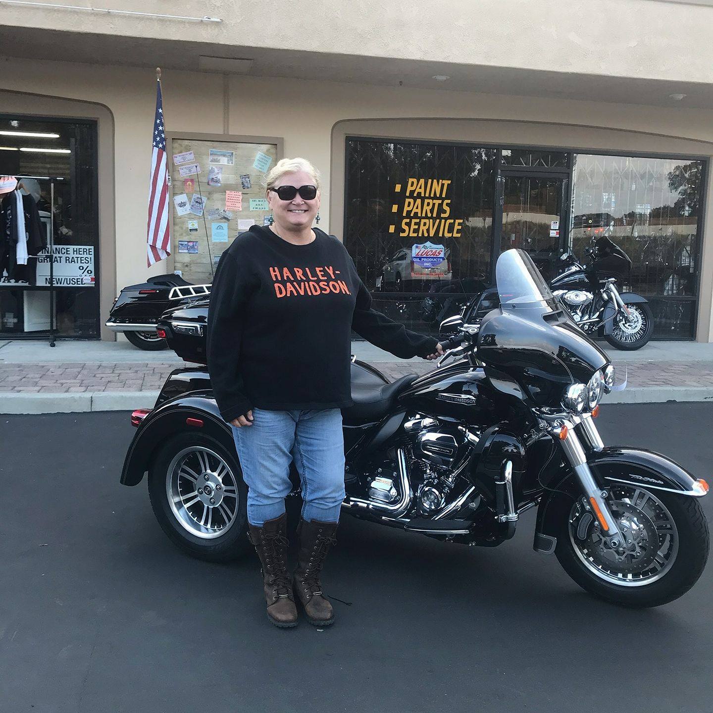 The Chopper Gallery is a business offering a great selection of over 125 American Big Twin motorcycles, with new bikes daily and sale prices everyday for 15 years. It is open seven days a week, with financing available. The full service department offers custom paint and accessories, and there is a great selection of riding apparel. The staff, sales associates, and team are described as very professional, helpful, friendly, not pushy, supportive, and amazing. Customers report a great experience, noting the staff is fair and will get you what you want and need without taxing you like other dealers. The customer service is called unbeatable. Many customers are repeat buyers, recommending the place to everyone for its better bikes and better prices. The business is praised for not low-balling on trade-ins and for its supportive follow-up, with staff calling to check on the bike's performance and to assist with any needs. The owner and family are personally involved. The overarching promise is that they get you riding when others can't.