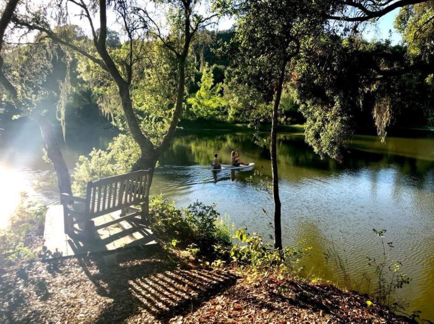 A beautiful place to sit outside with a glass of wine by the water.